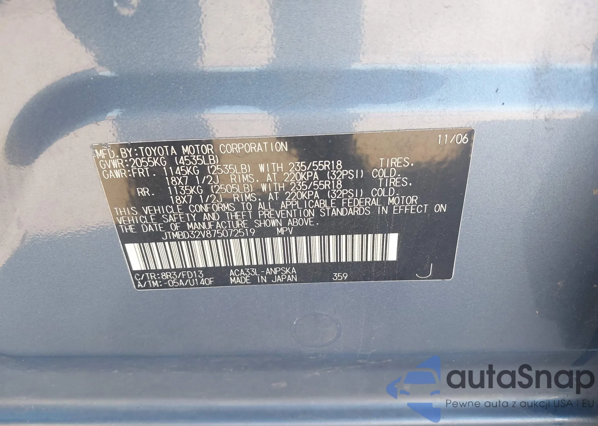 LOT: 43580734 VIN: 5TENM92N24Z436376