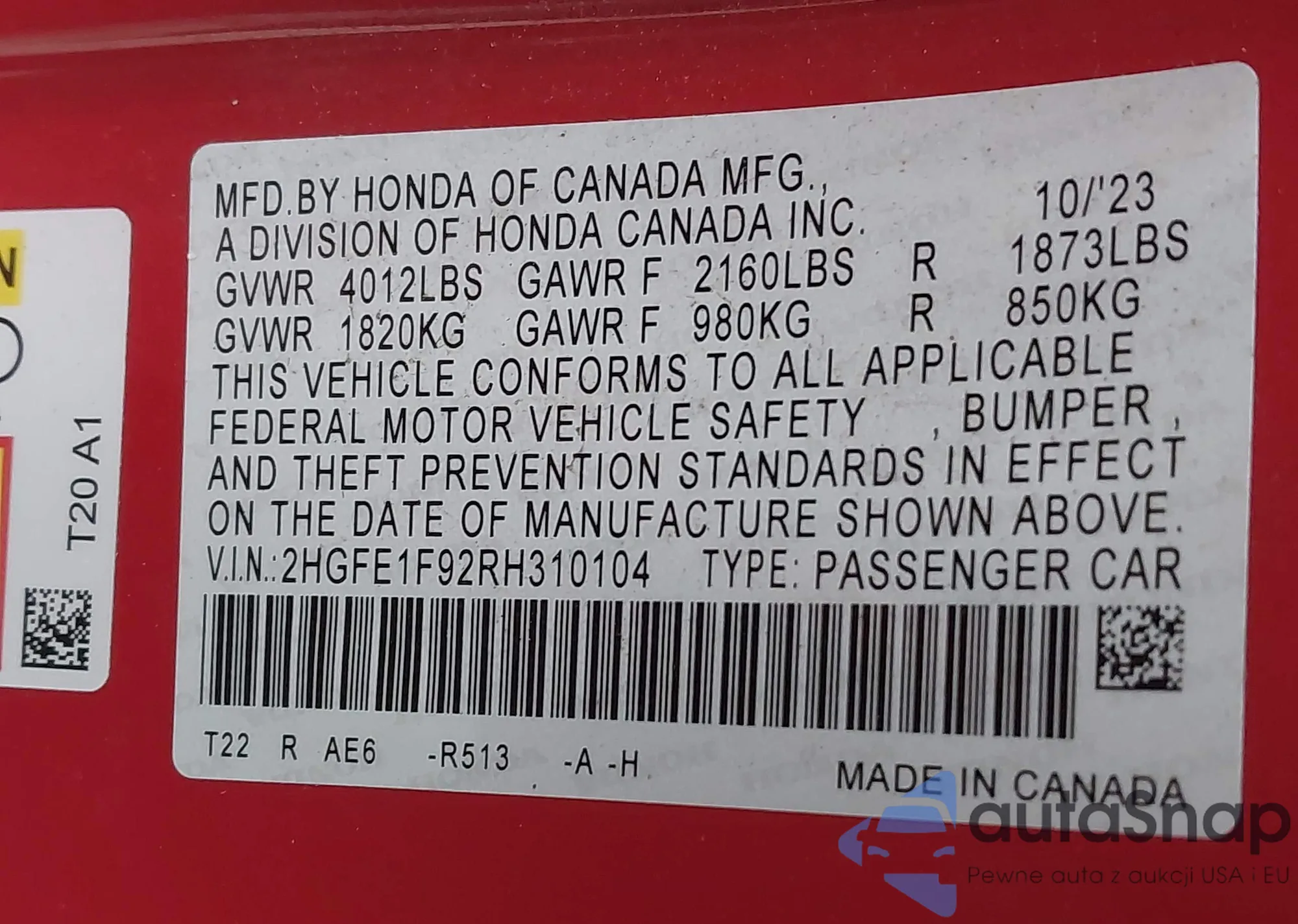 • VIN 2HGFE1F92RH310104