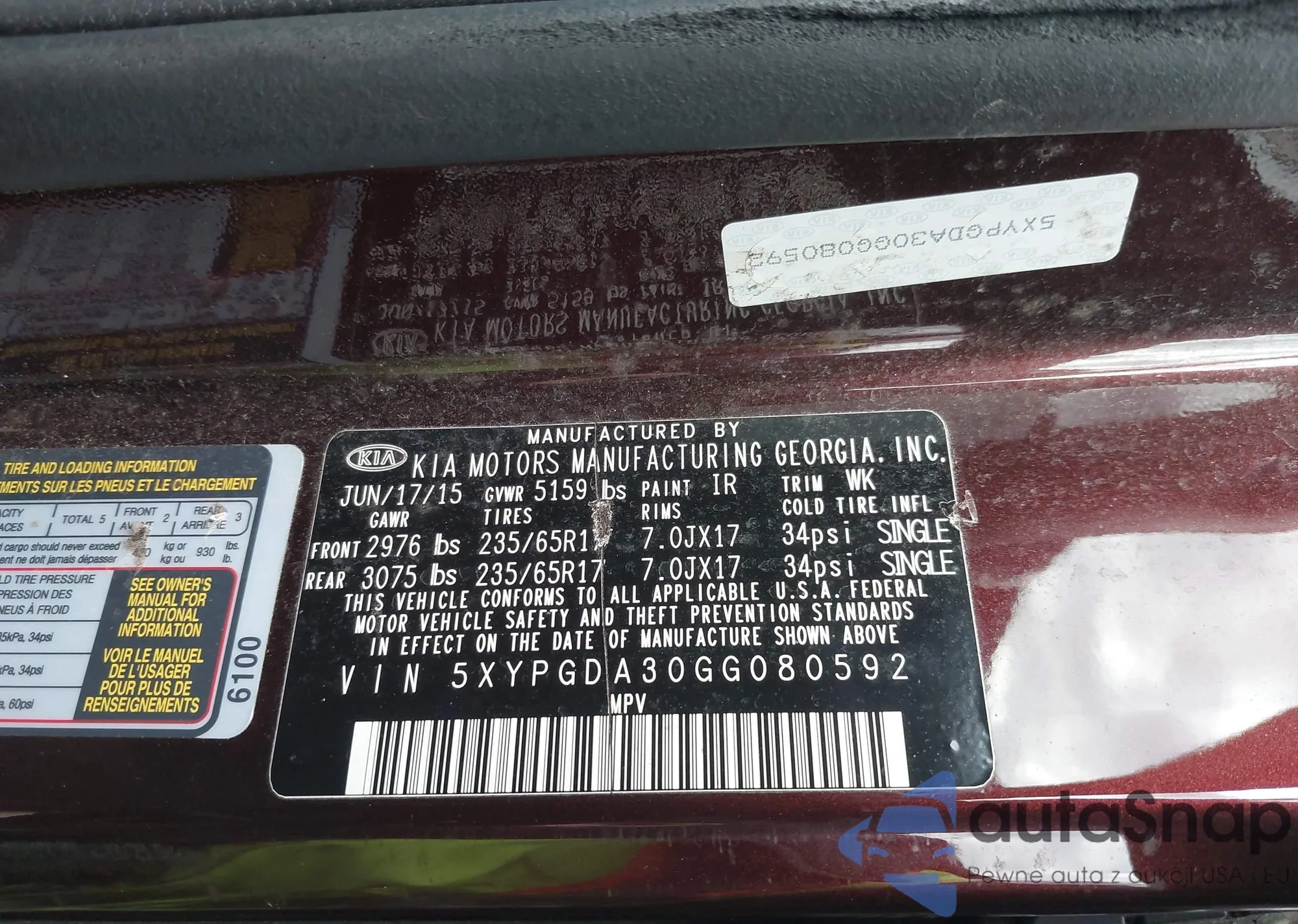 • VIN 5XYPGDA30GG080592