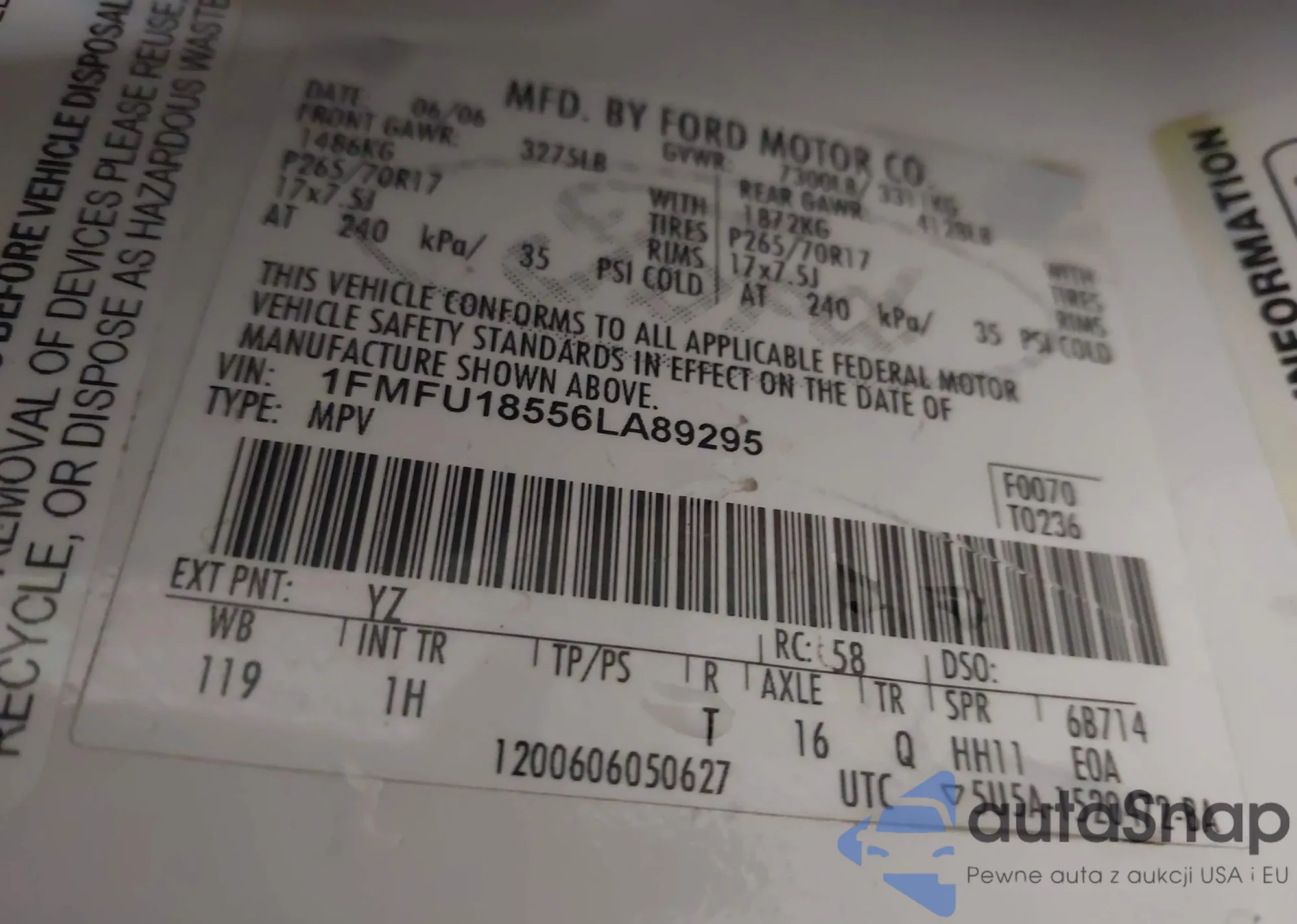 LOT: 43580329 VIN: 1FMFU18556LA89295