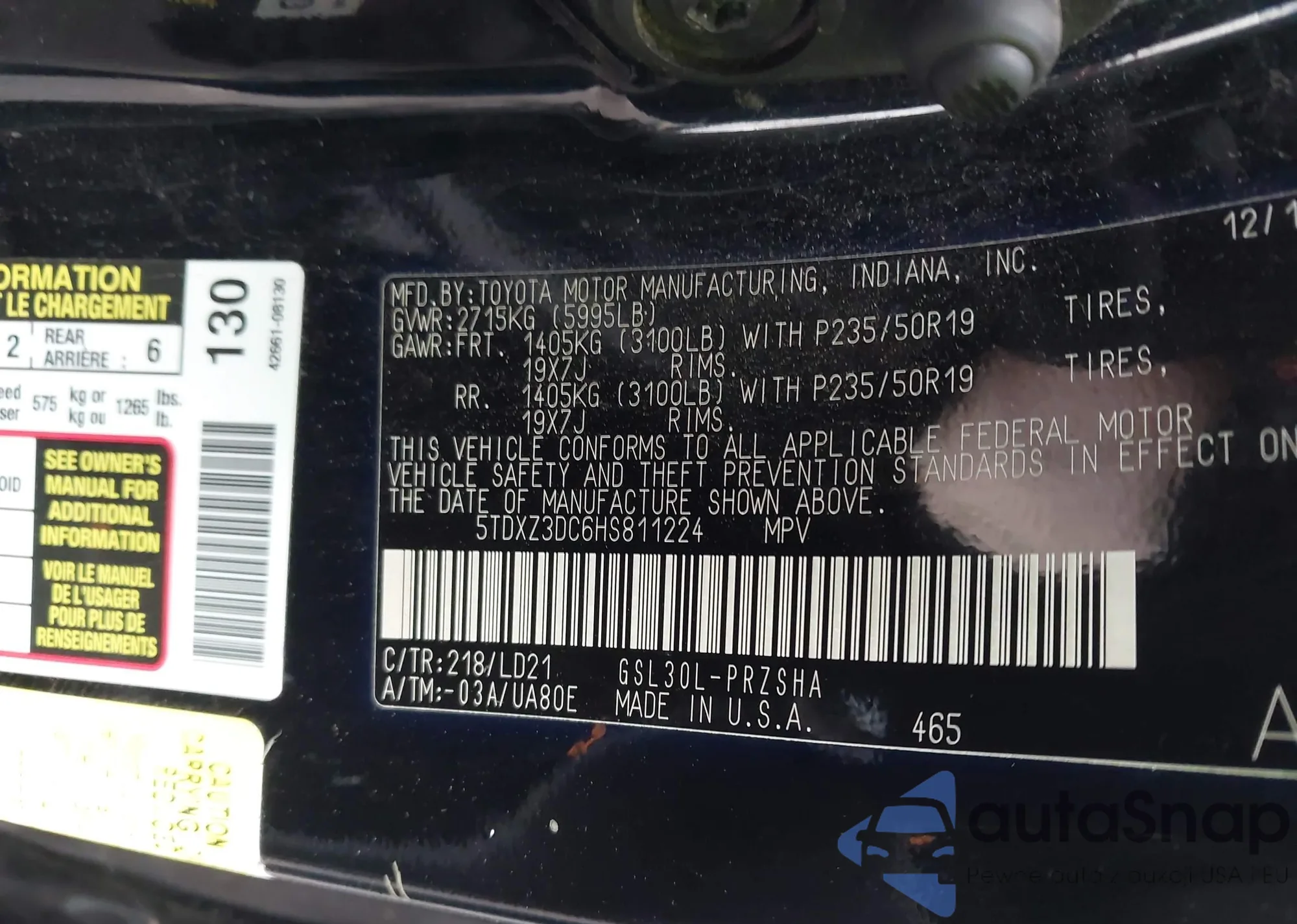 • VIN 5TDXZ3DC6HS811224