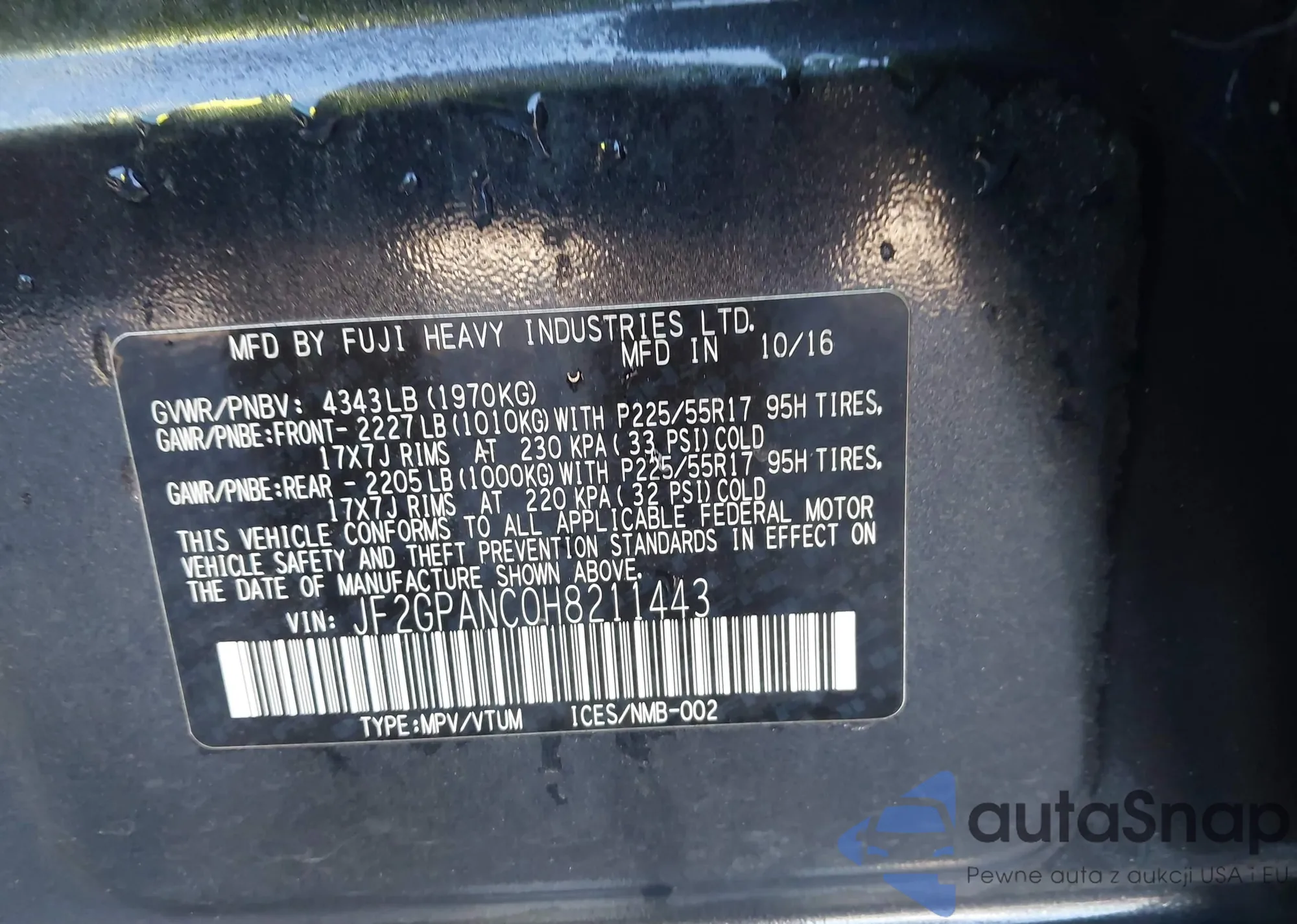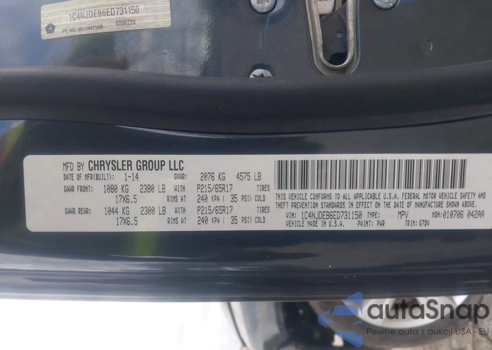 LOT: 43474432 VIN: 1C4PJMDB0HW599120
