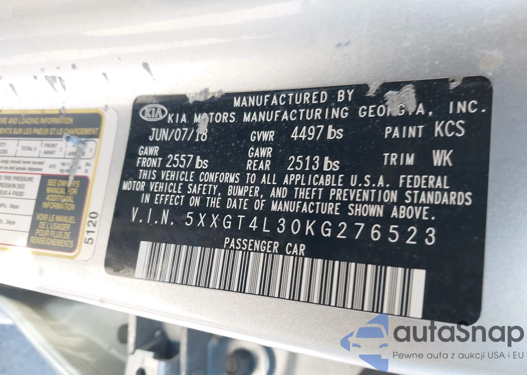 • VIN 5XXGT4L30KG276523