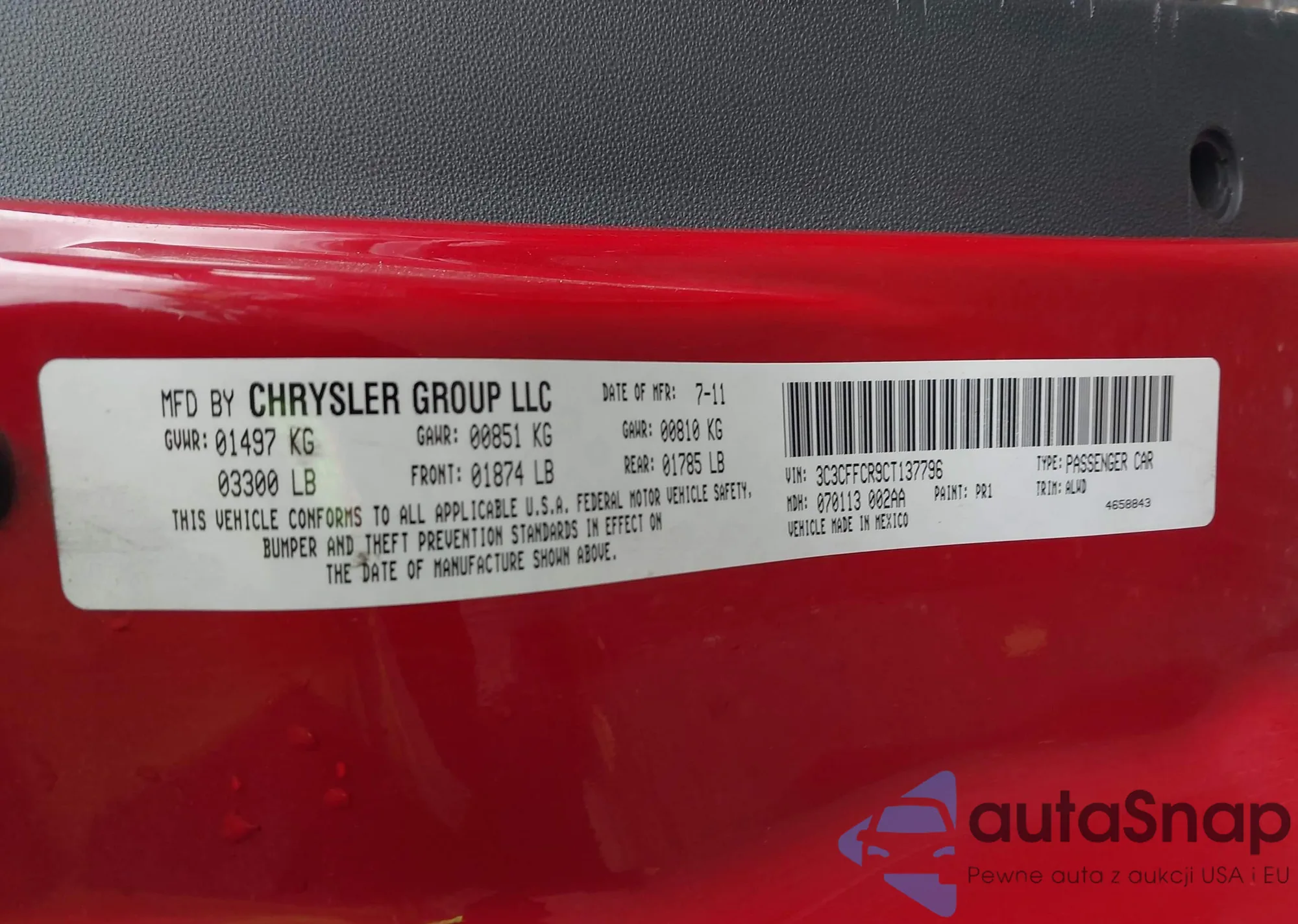 • VIN 3C3CFFCR9CT137796