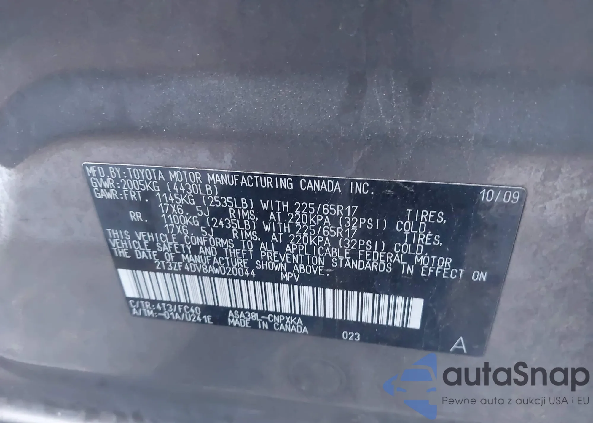 • VIN 2T3ZF4DV8AW020044