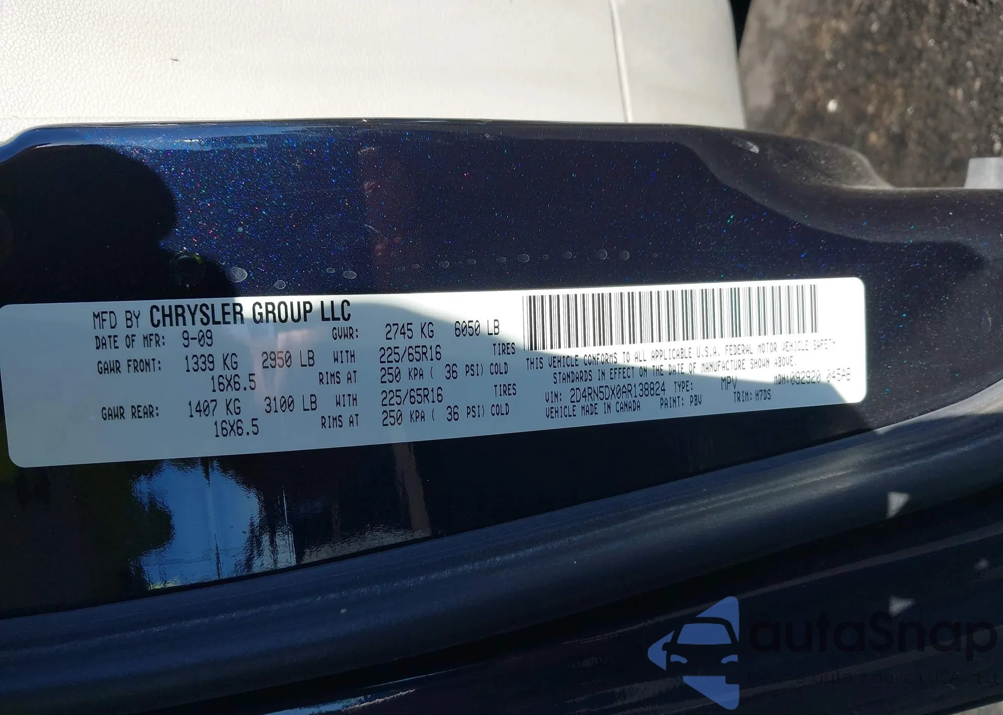 • VIN 2D4RN5DX0AR138824