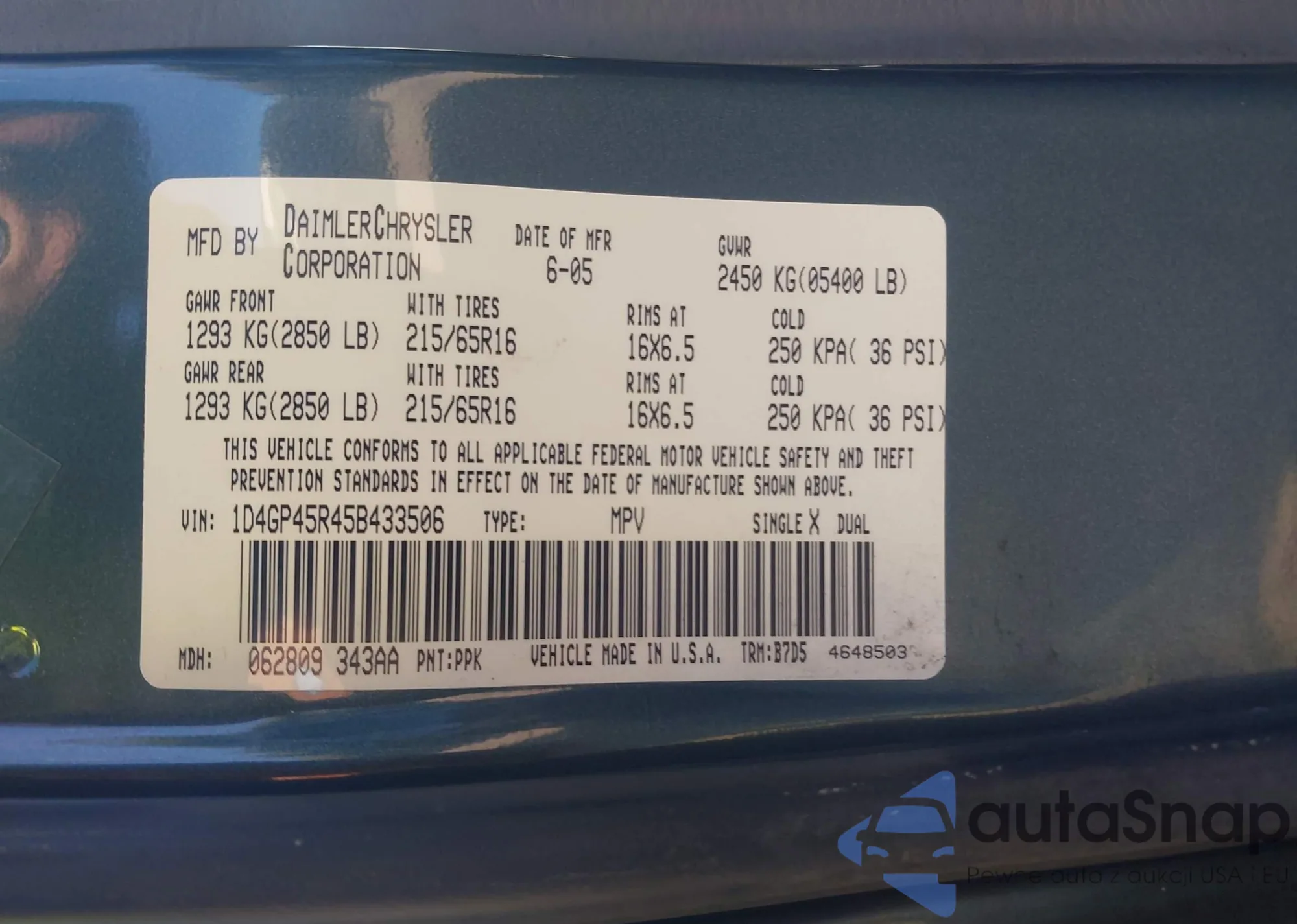 • VIN 1D4GP45R45B433506