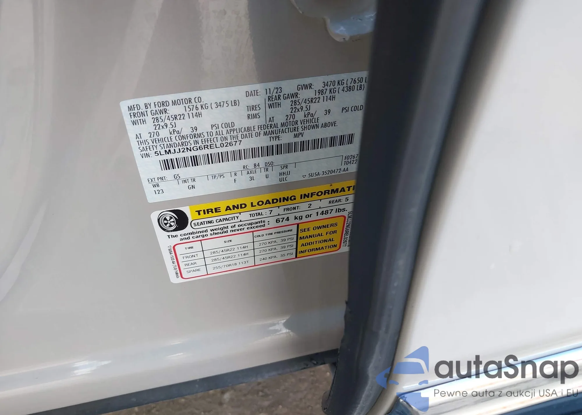 LOT: 43386399 VIN: 5LMJJ2NG6REL02677