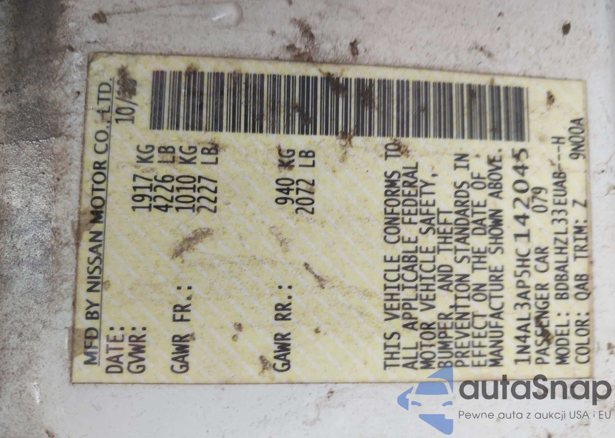 • VIN 1N4AL3AP5HC142045
