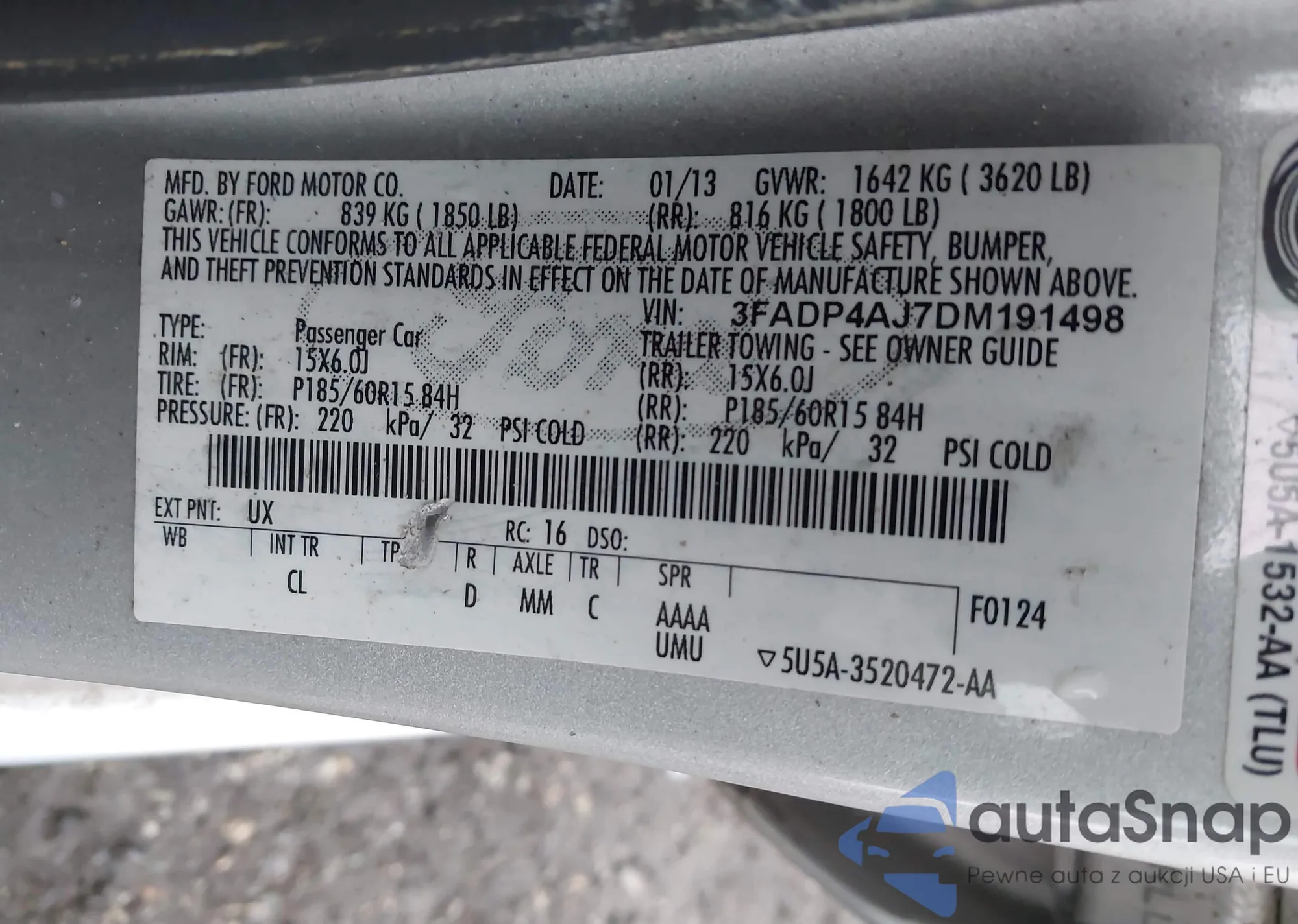 • VIN 3FADP4AJ7DM191498