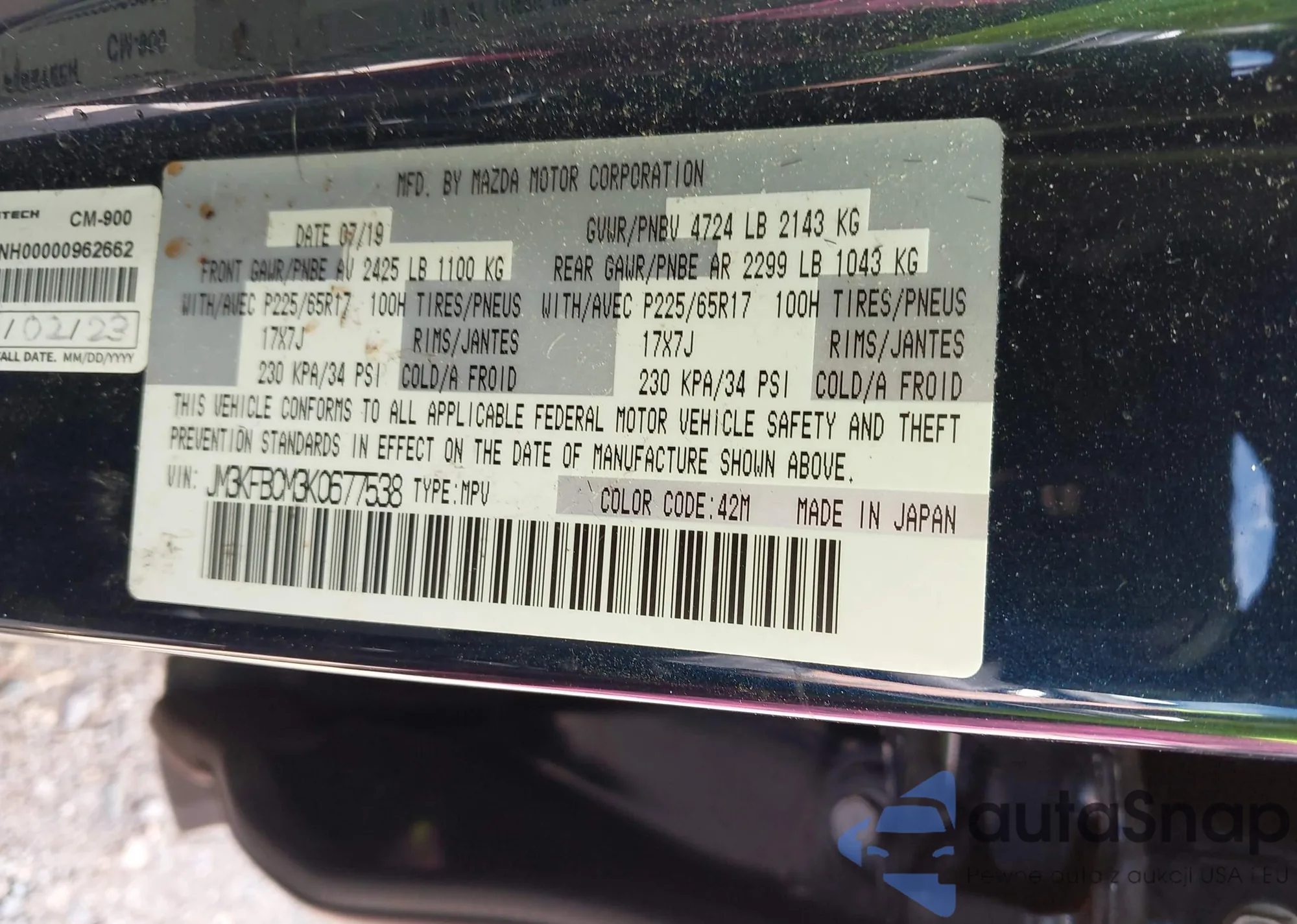 • VIN 7MUFBABG7RV053959