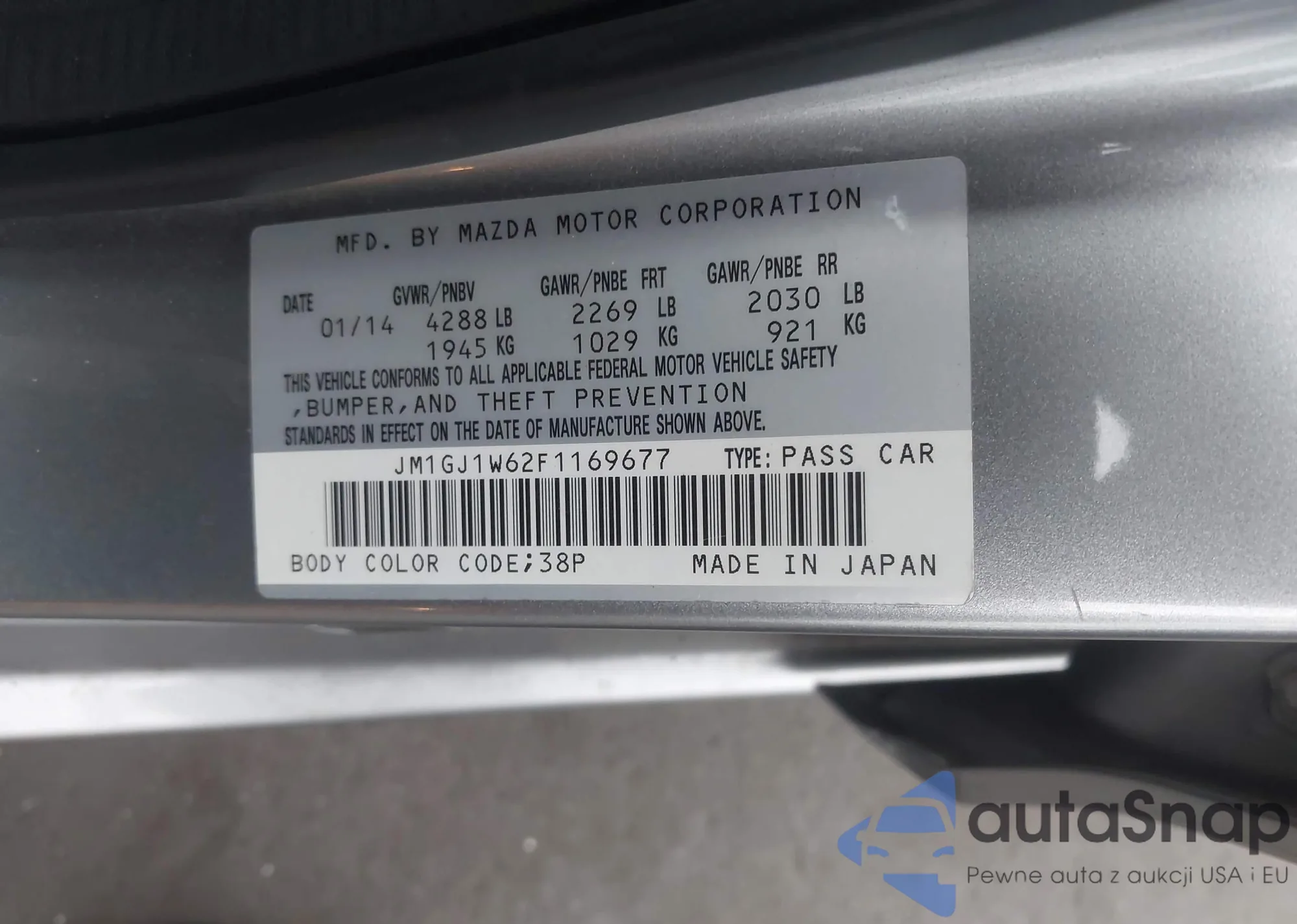 LOT: 43093853 VIN: JM1GJ1W62F1169677