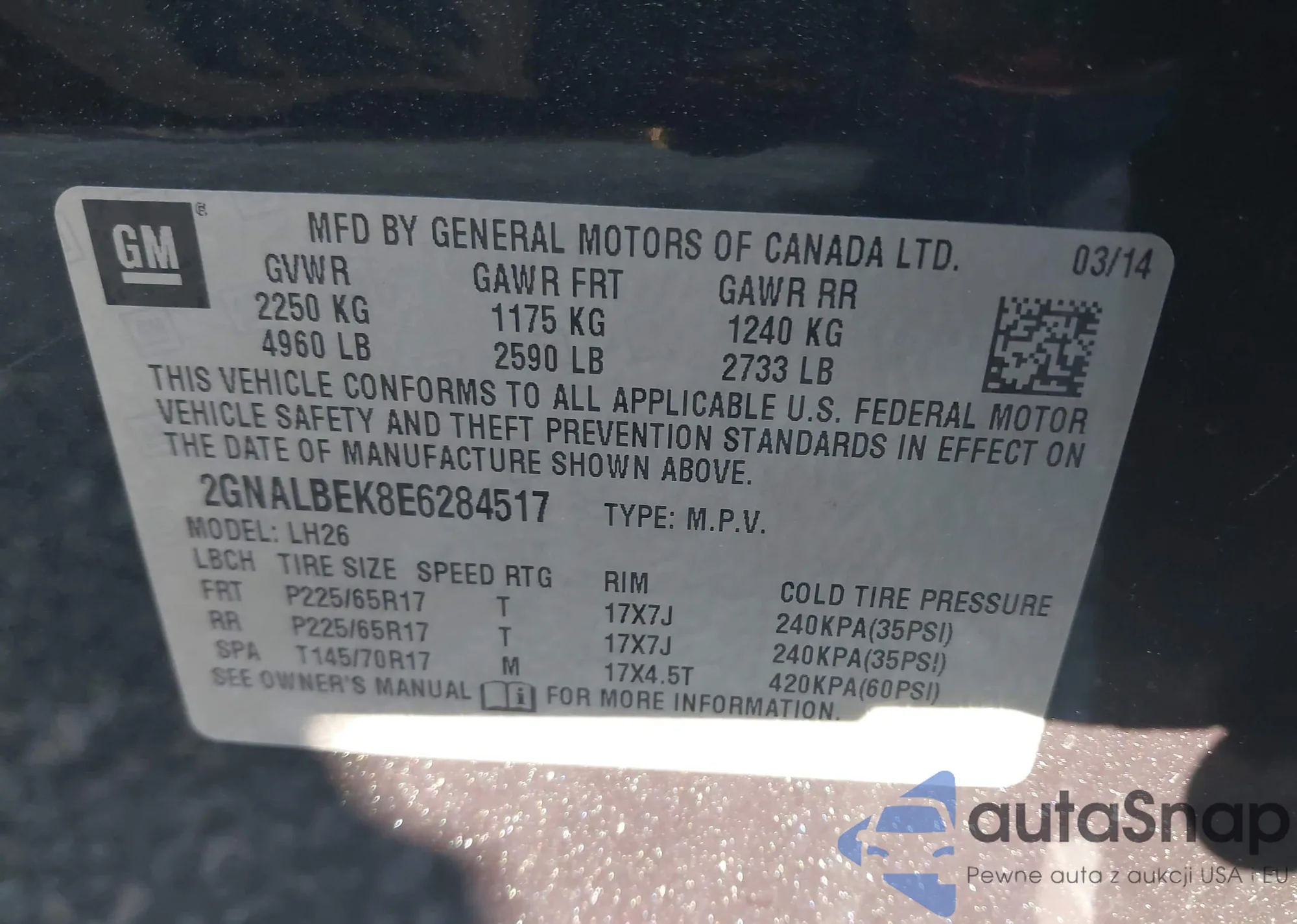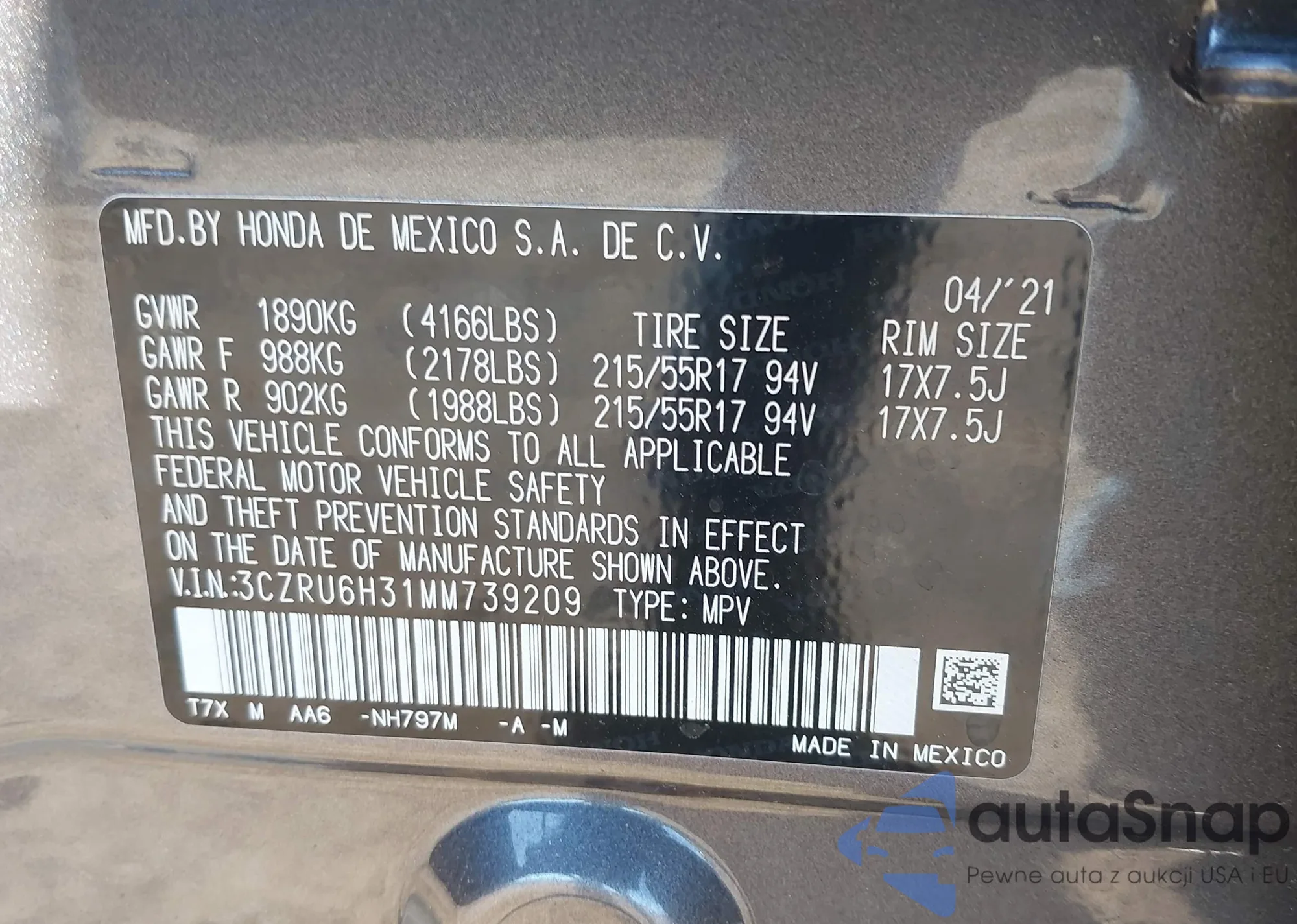 • VIN 2HKRM3H32EH532159
