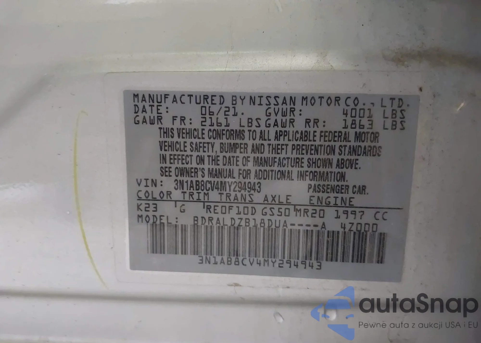 • VIN 3N1AB8CV4RY204729