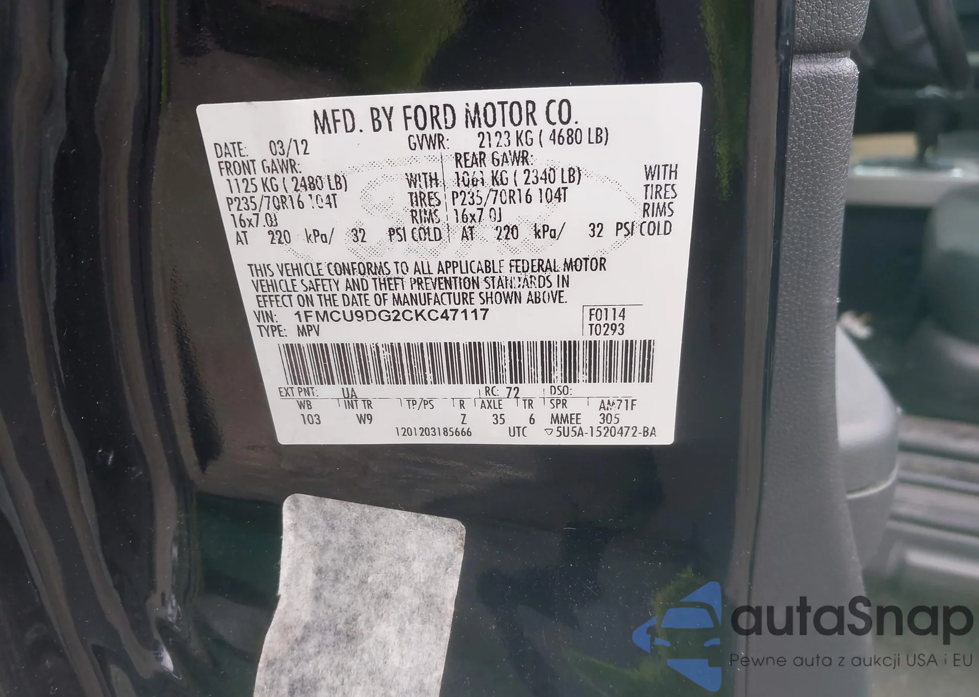 LOT: 43403357 VIN: 1FMCU9DG2CKC47117