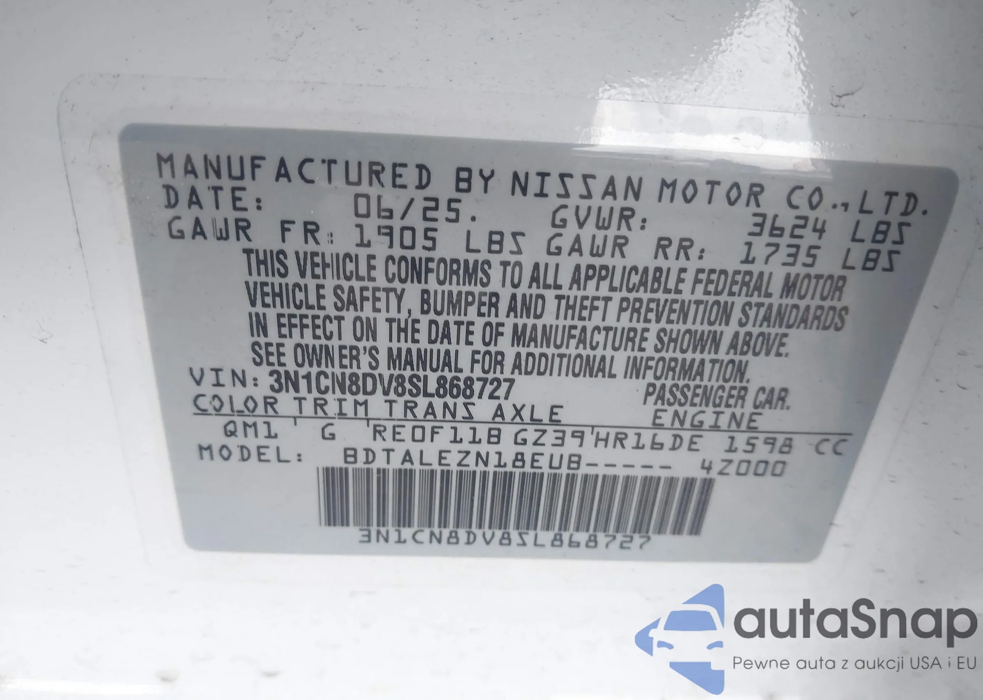 • VIN 3N1CN8DV8SL868727