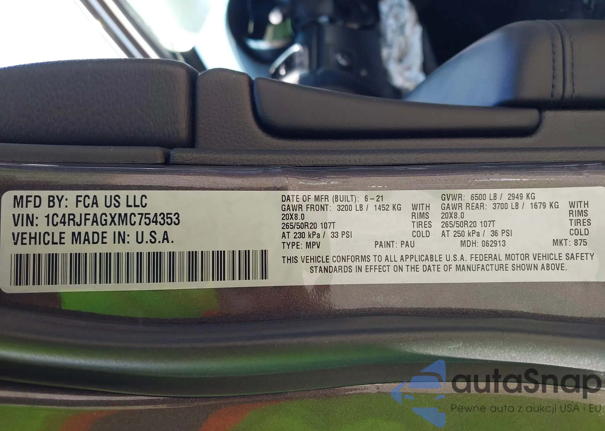 • VIN 1C4RJFAGXMC754353