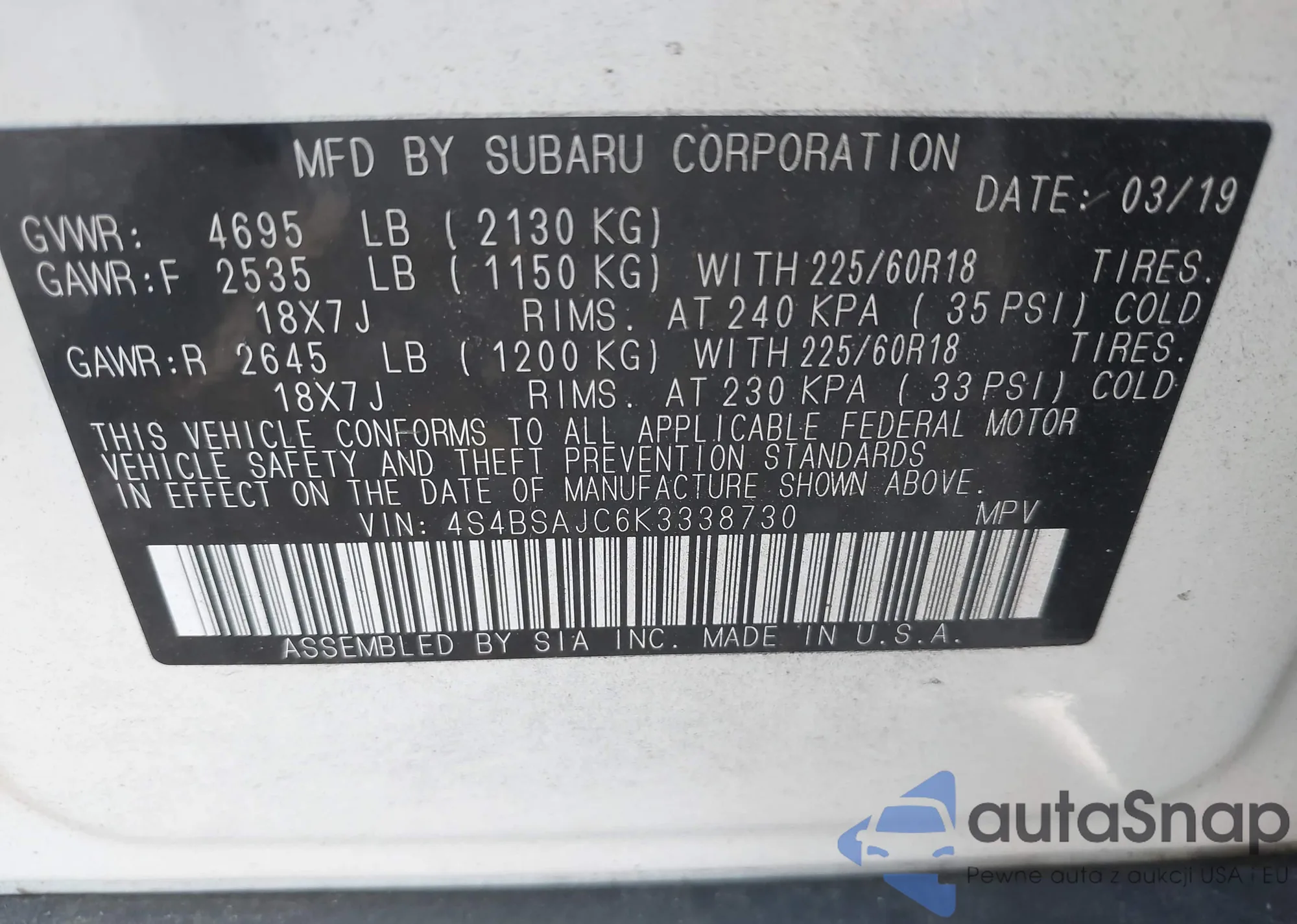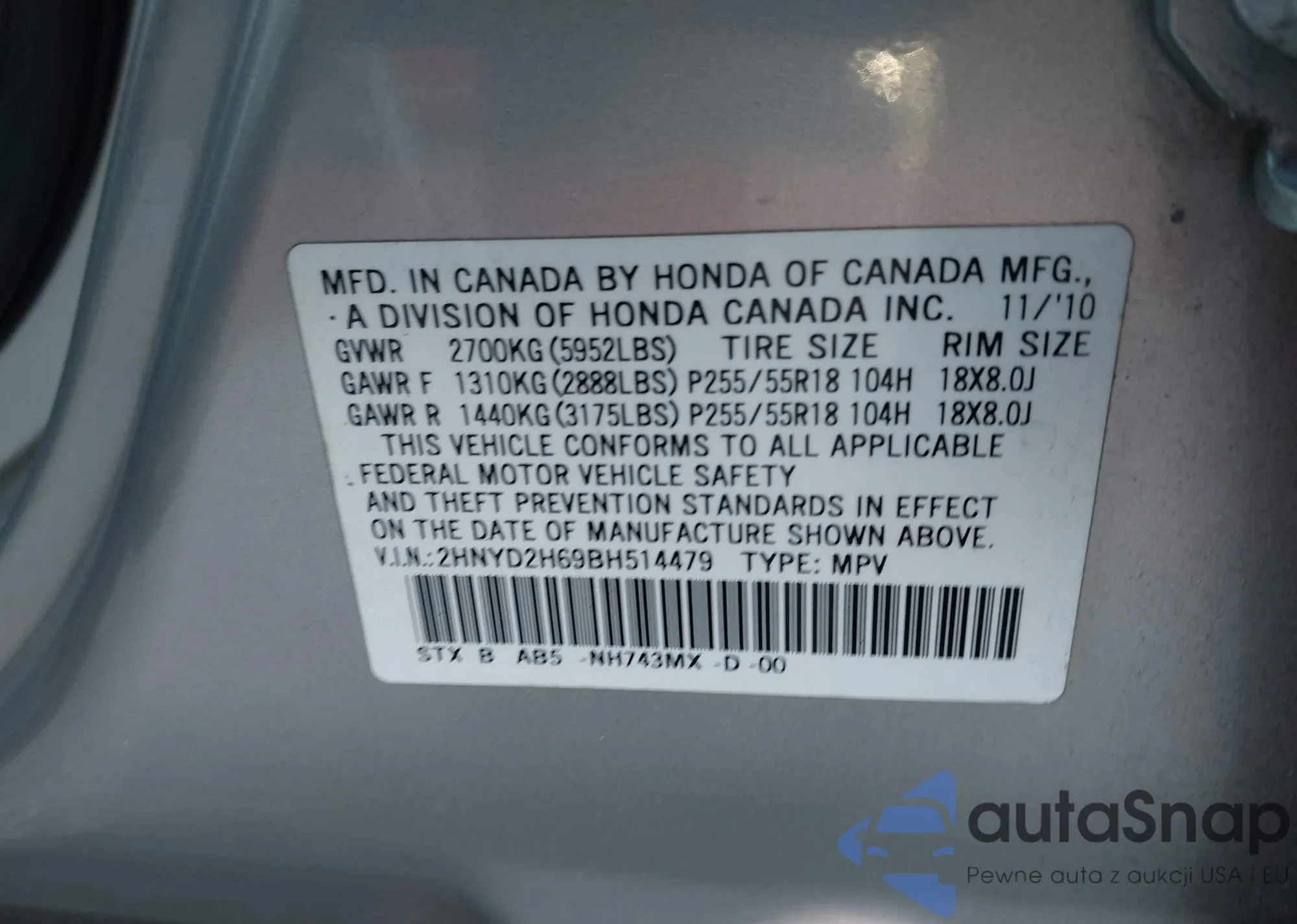• VIN 5UXWX5C57BL707994