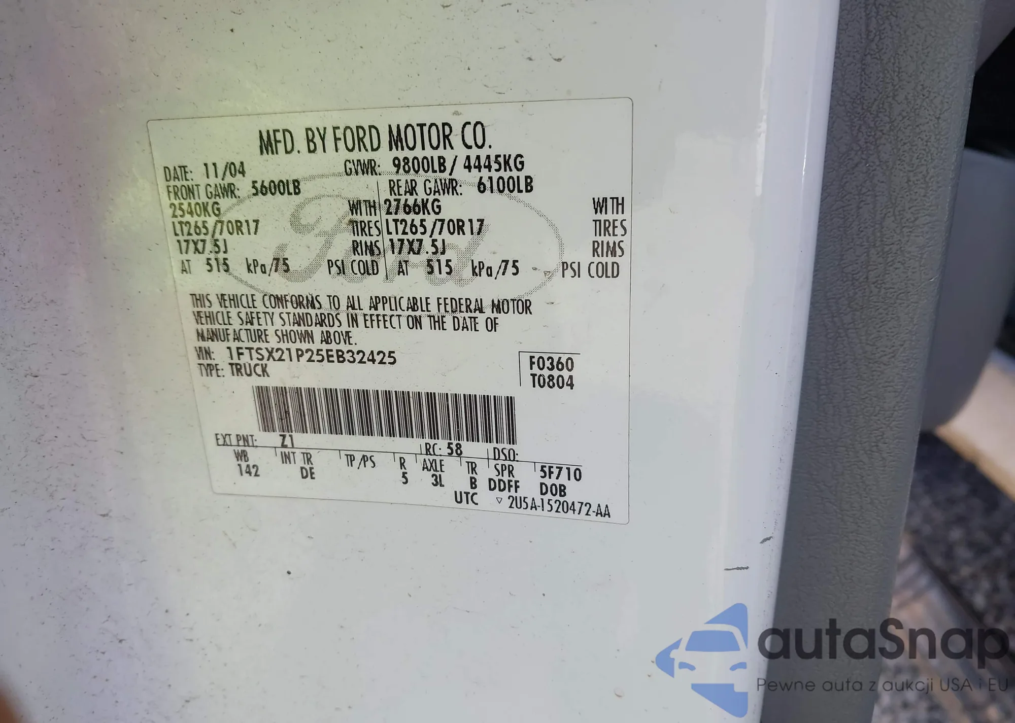 LOT: 43535985 VIN: 1FTSX21P25EB32425
