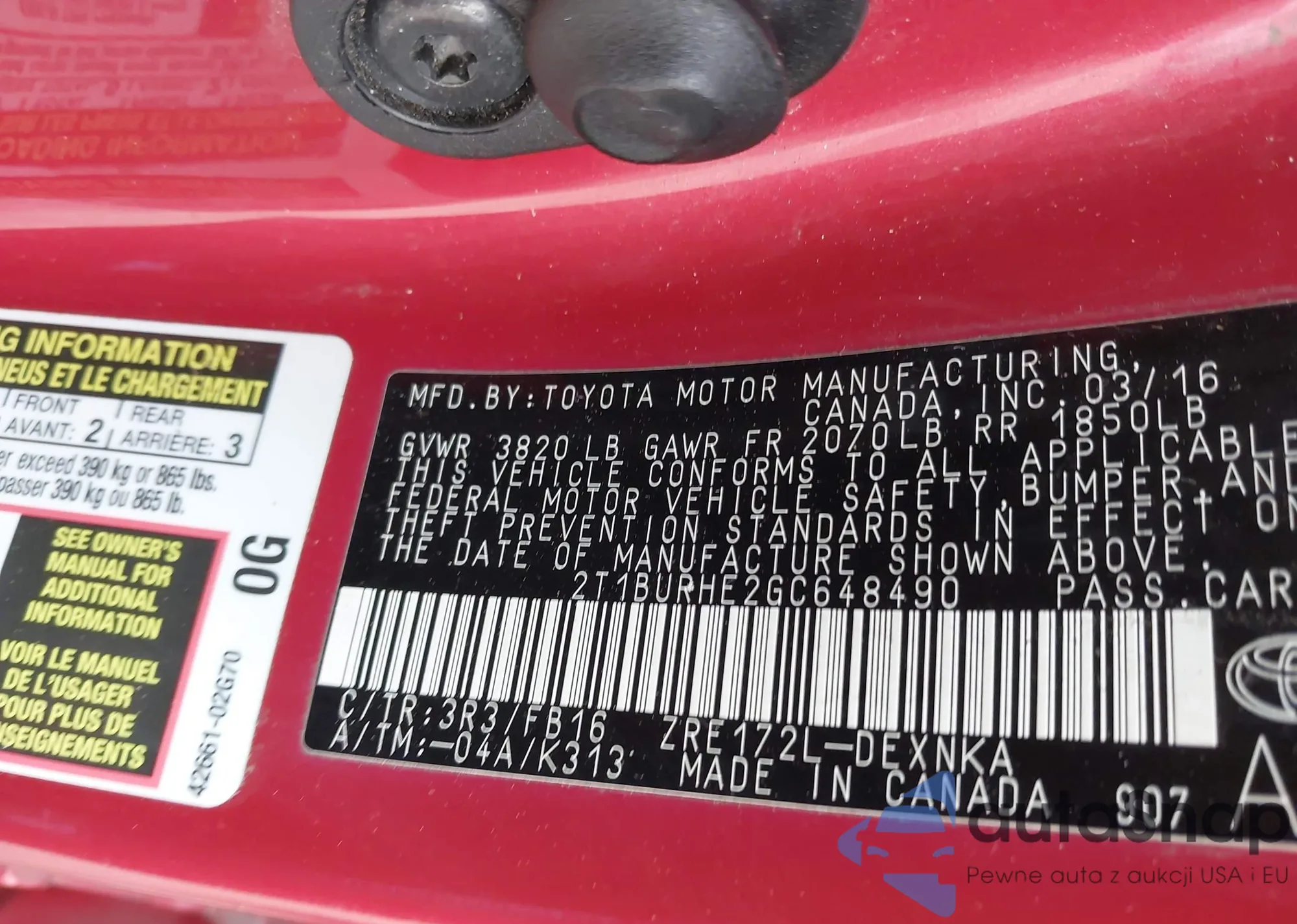 • VIN 2T1BURHE2GC648490
