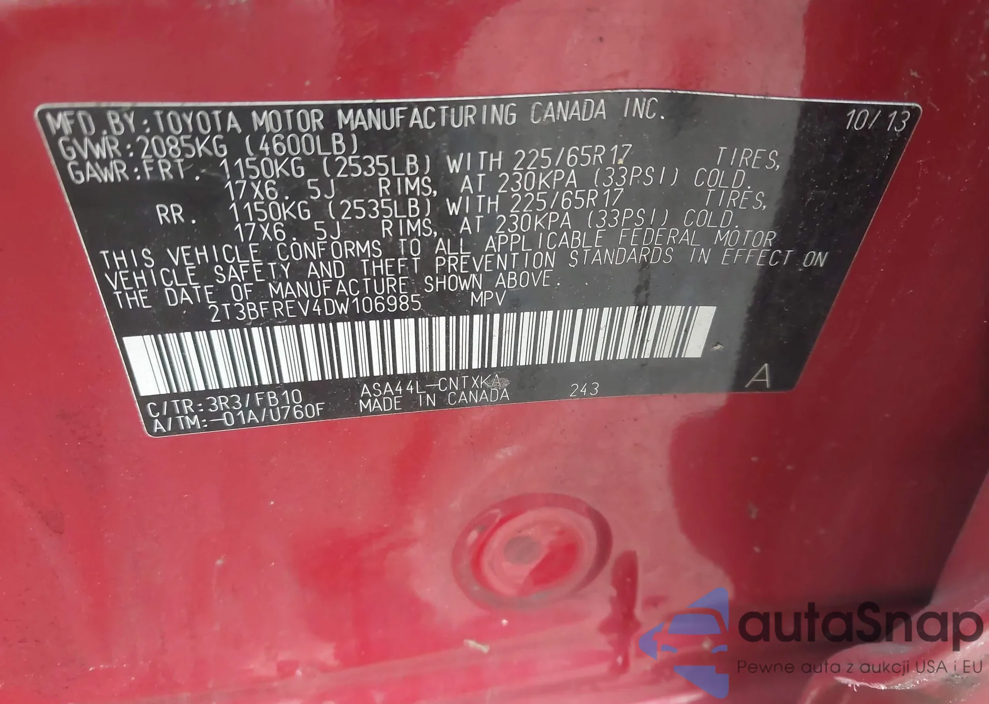 • VIN 5TDCZRAHXLS503080