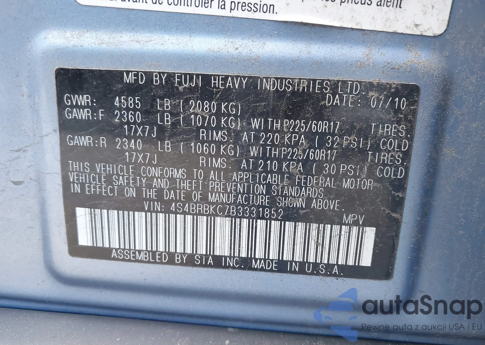 • VIN 4S4BRBKC7B3331852