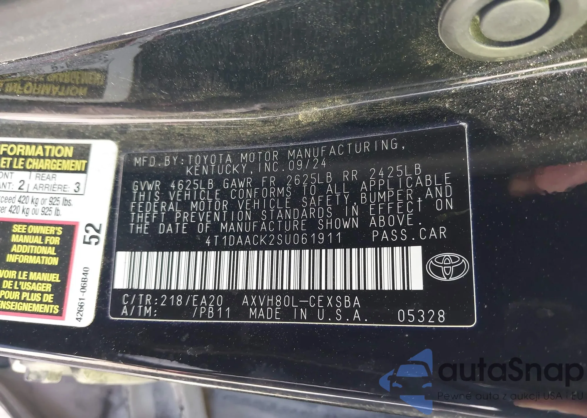LOT: 43659416 VIN: 4T1DAACK2SU061911