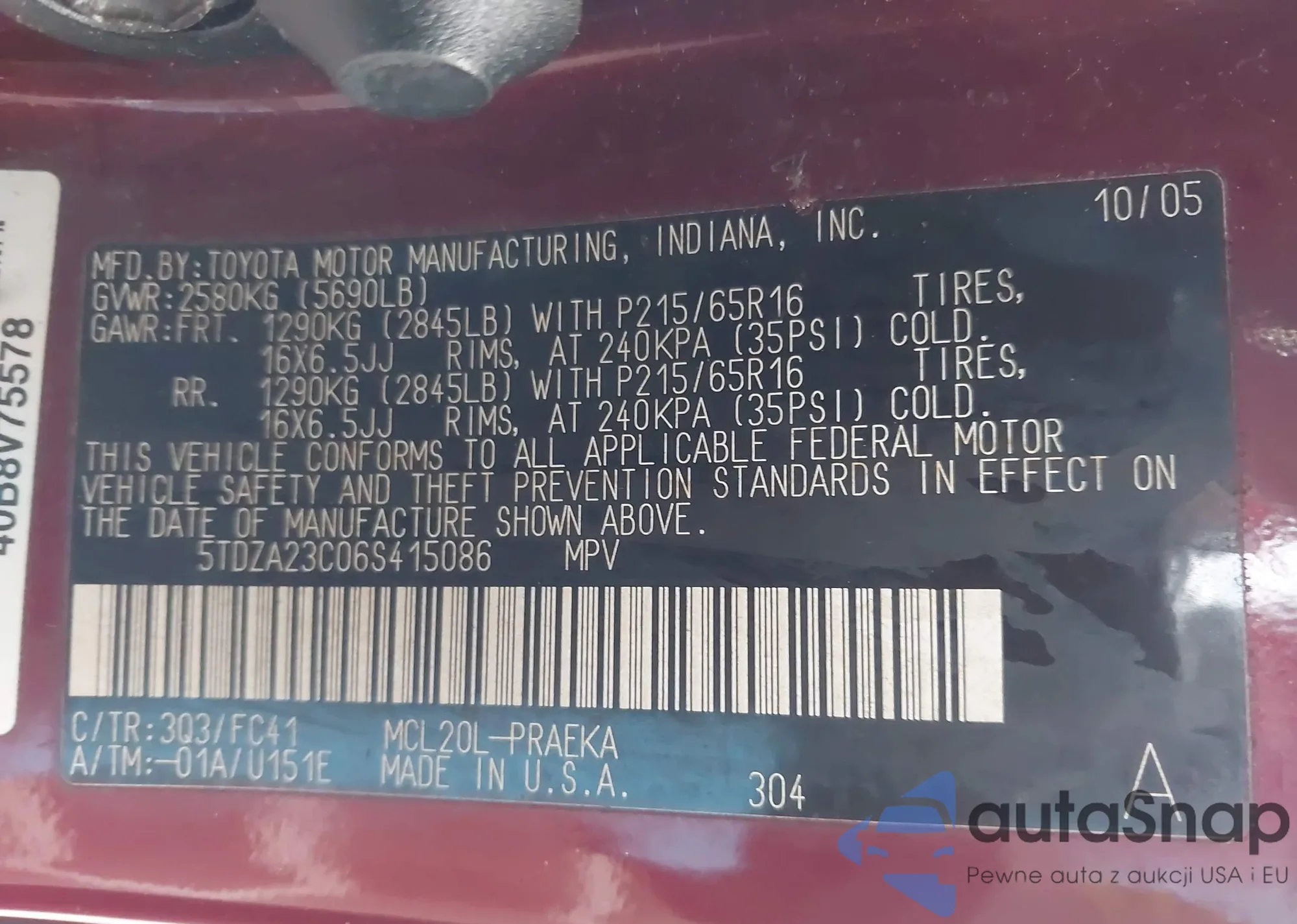 • VIN 5TDZA23C06S415086