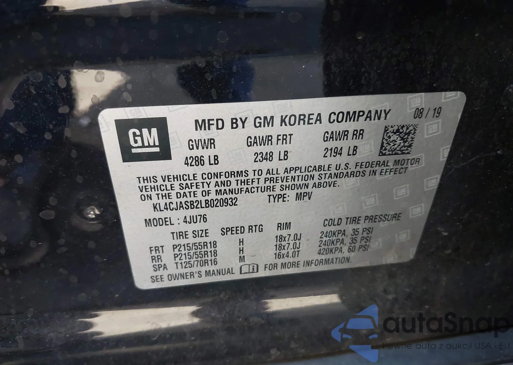 • VIN KL4CJASB2LB020932