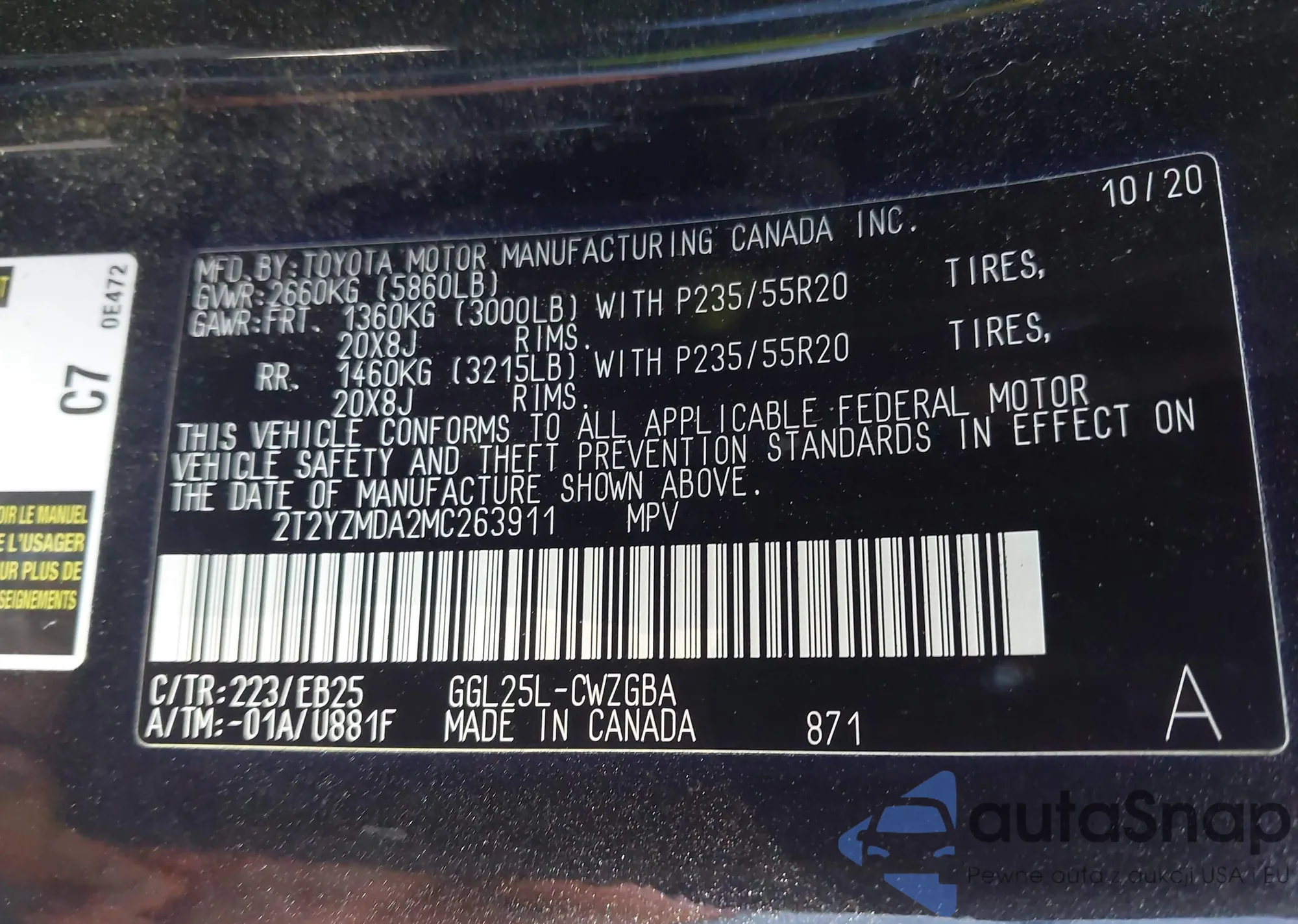 LOT: 43353477 VIN: 5YFEPRAE2LP117007