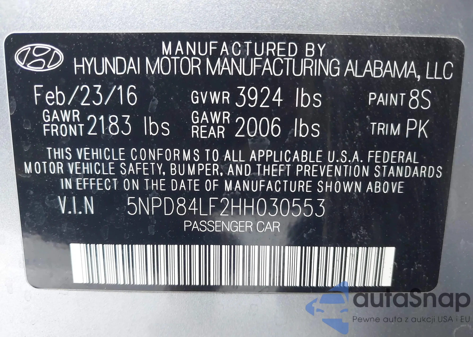 • VIN 5NPD84LF2HH030553