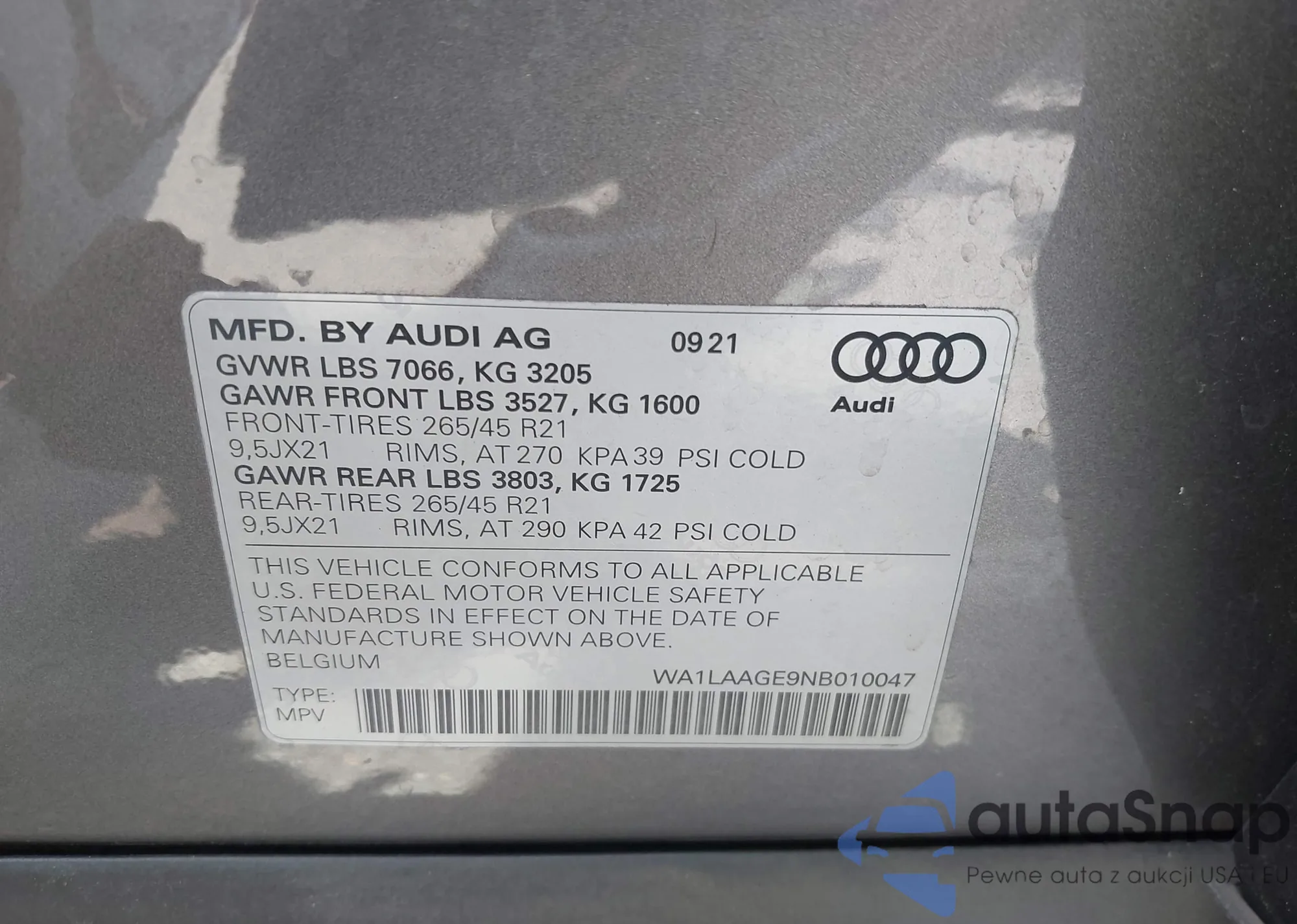 LOT: 43102789 VIN: WA1LAAGE9NB010047
