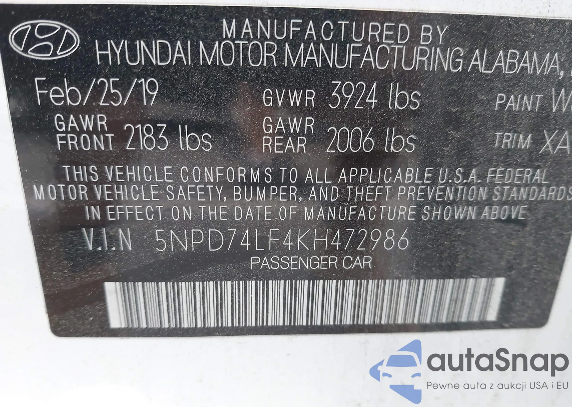• VIN 5NPD74LF4KH472986