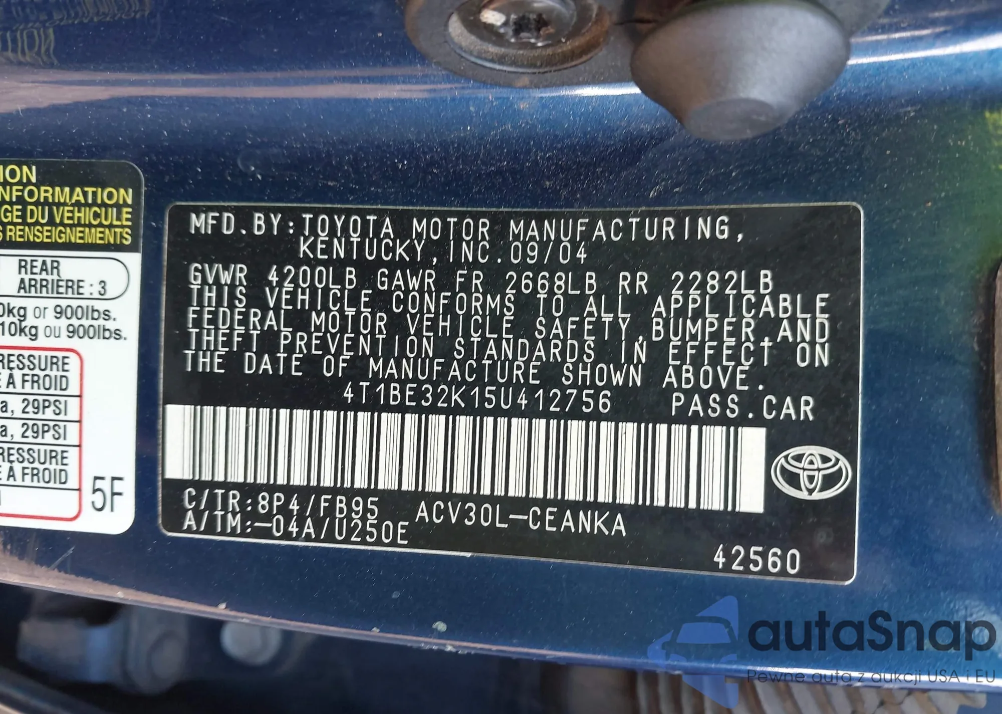 • VIN 4T1BE32K15U412756