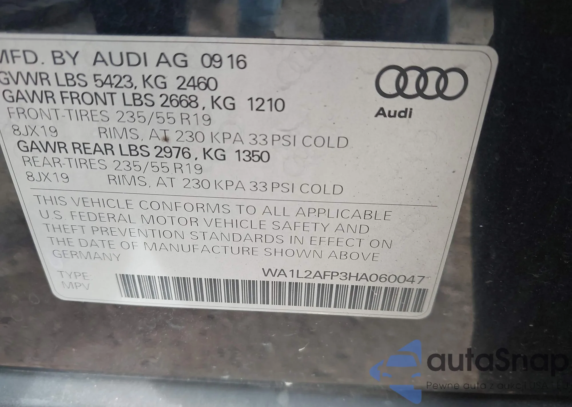 • VIN WA1LAAGE9NB010047