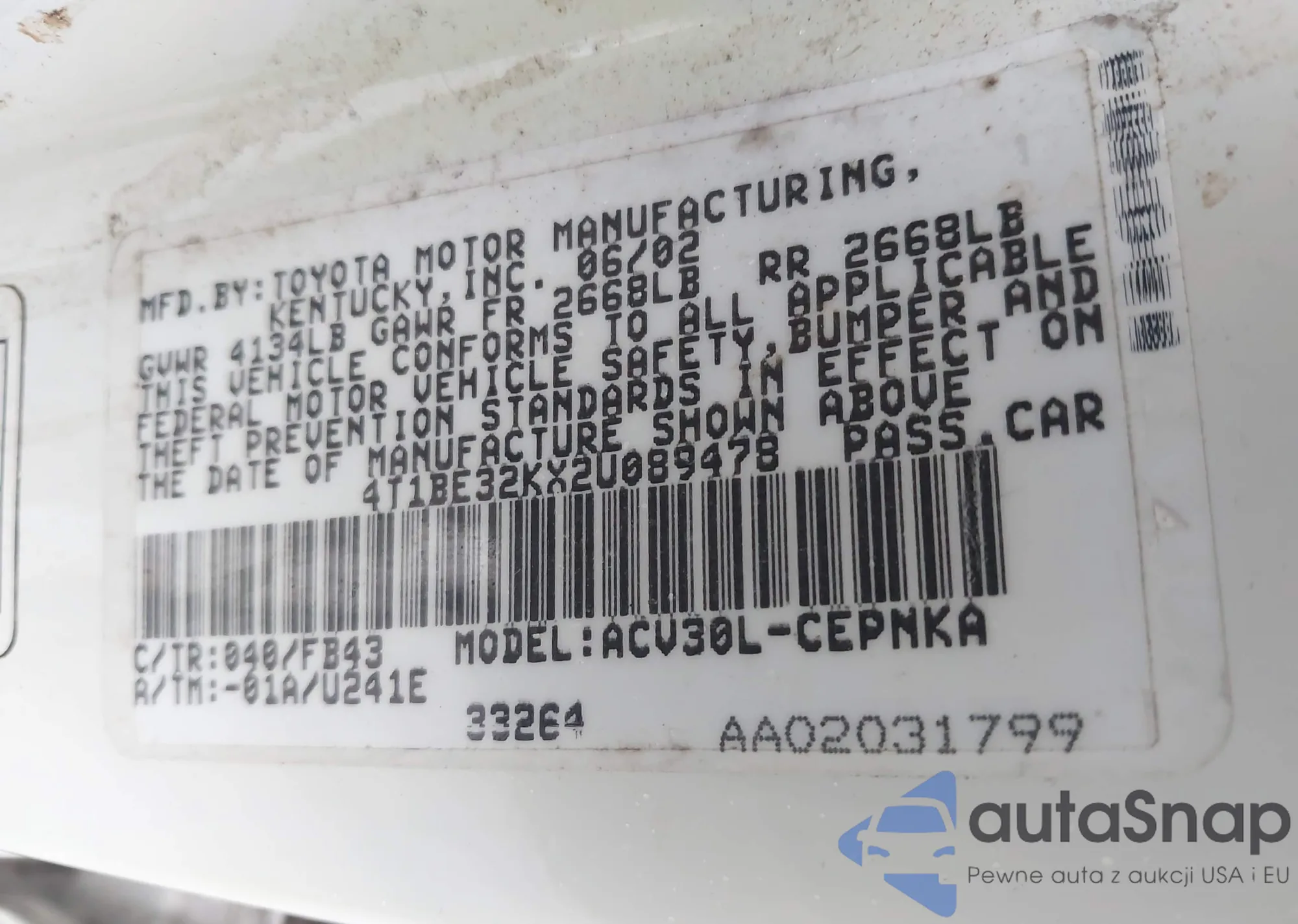 LOT: 43562627 VIN: JTJBT20X130010448