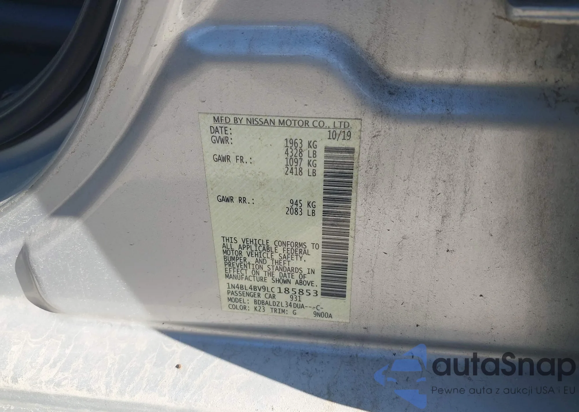 LOT: 43545126 VIN: 4S3BMBC68D3028979