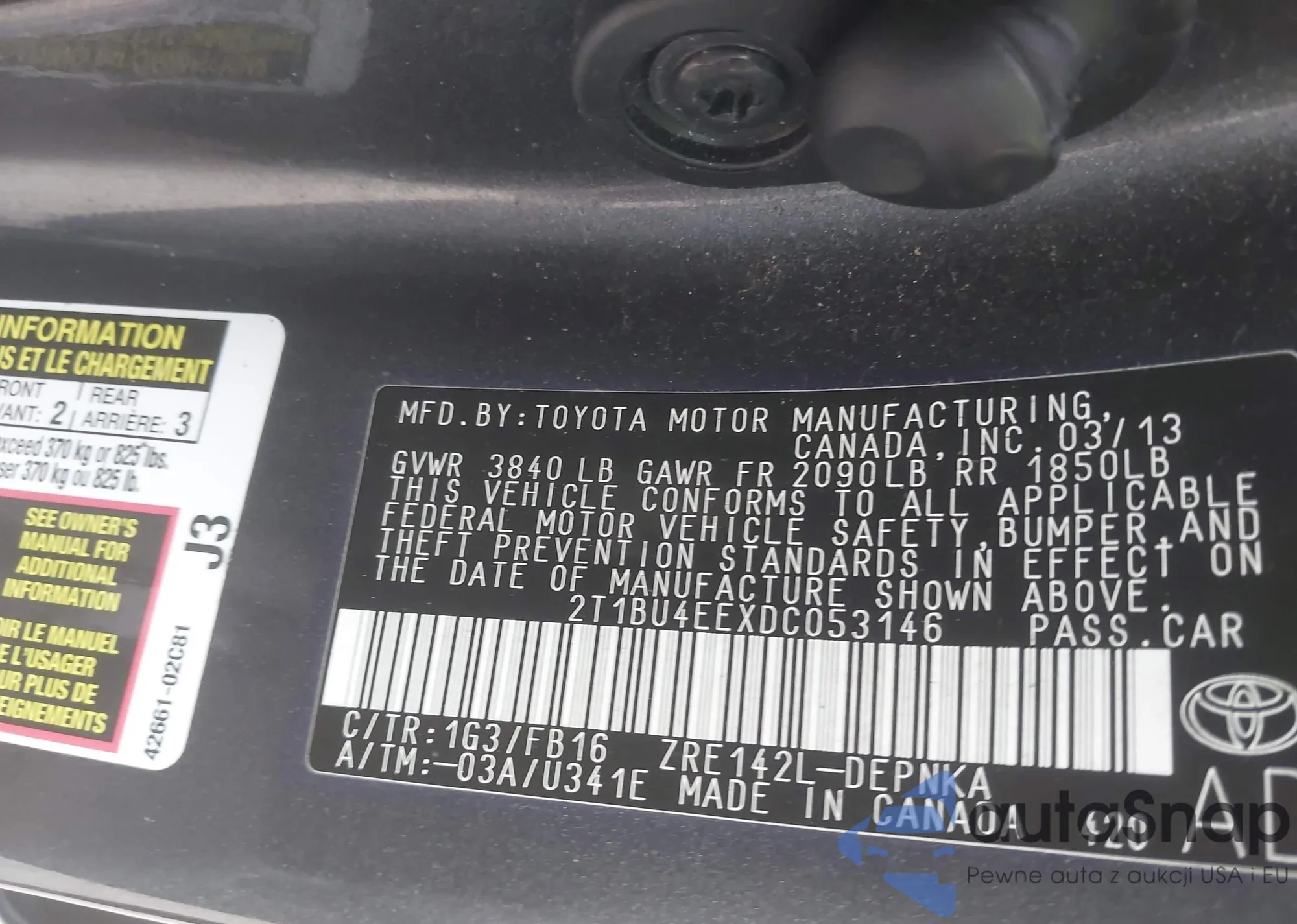 • VIN 2T1BU4EEXDC053146