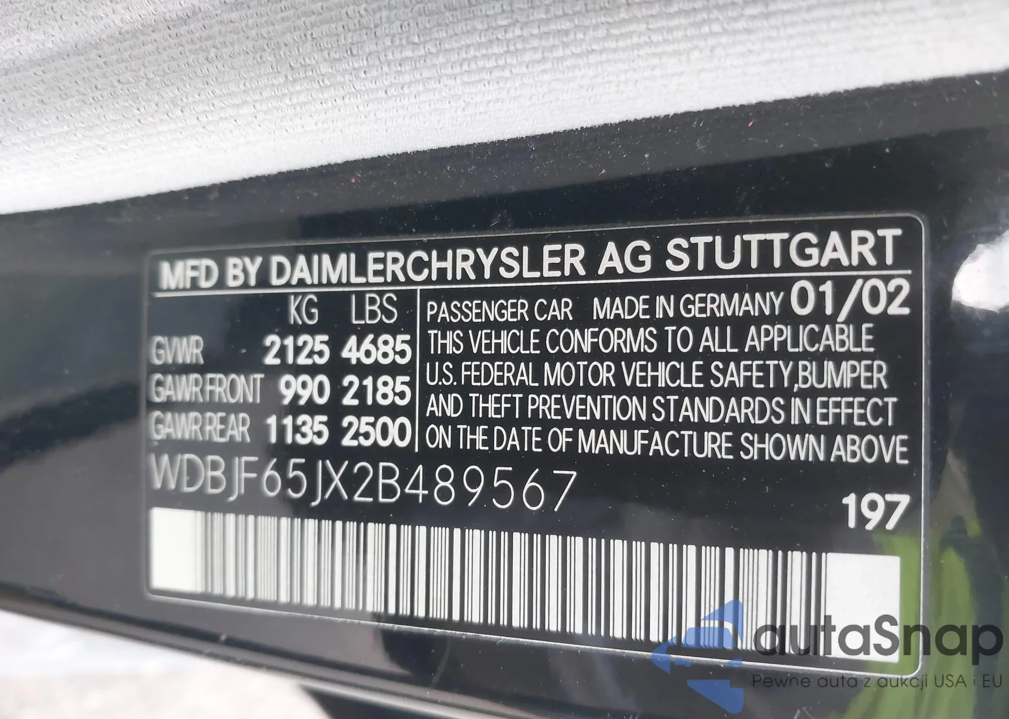 • VIN WDBJF65JX2B489567