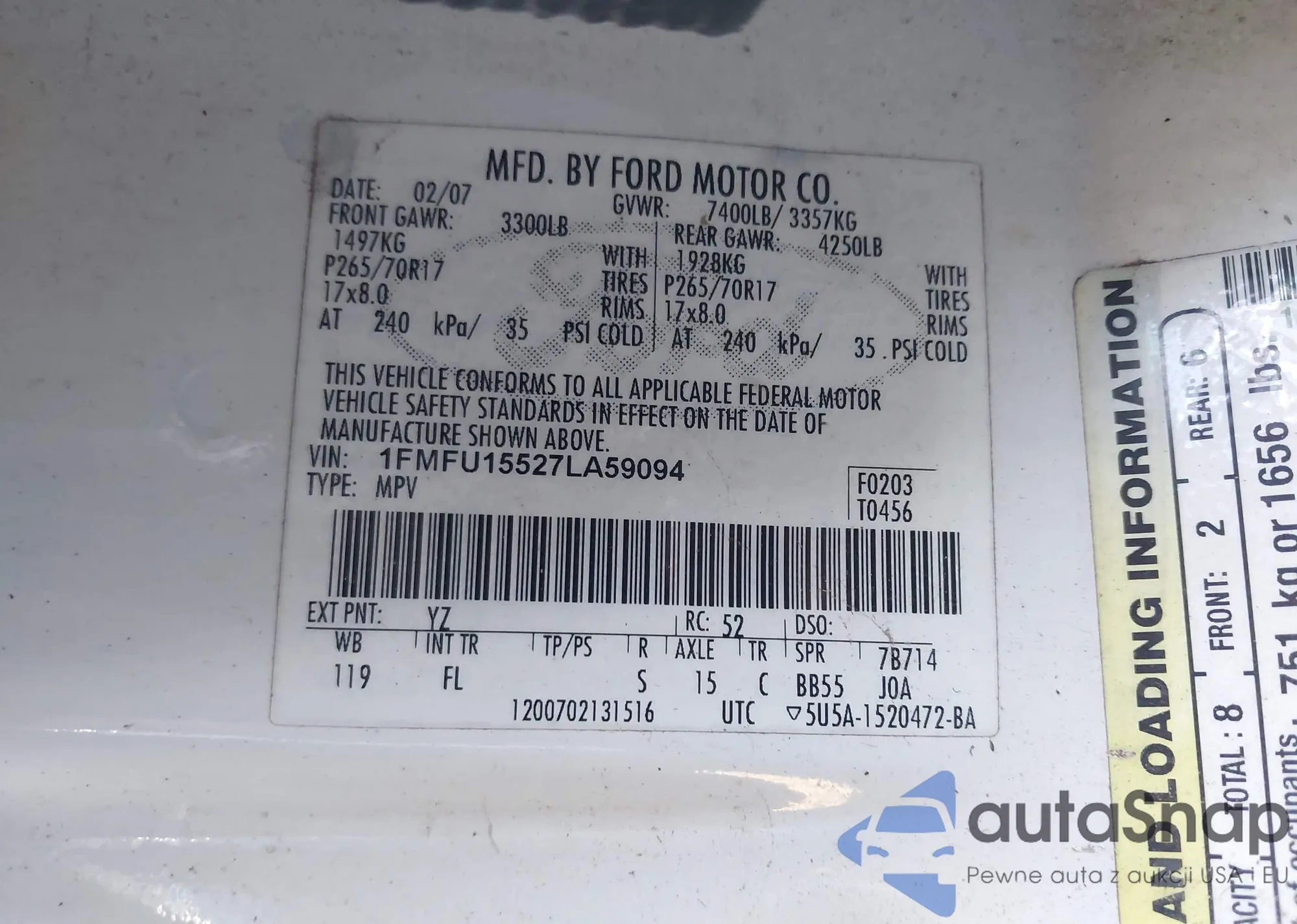 LOT: 43515460 VIN: 5TDZK23C37S076340