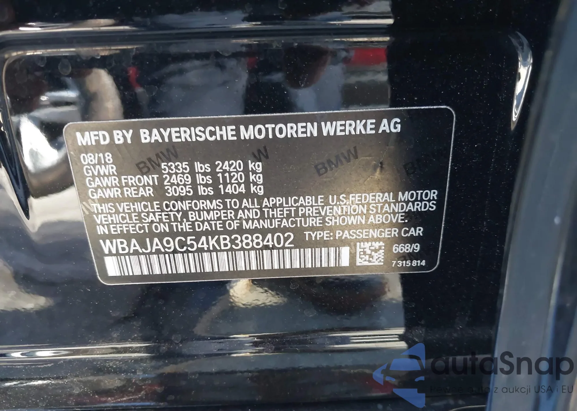 • VIN WBAJA9C54KB388402