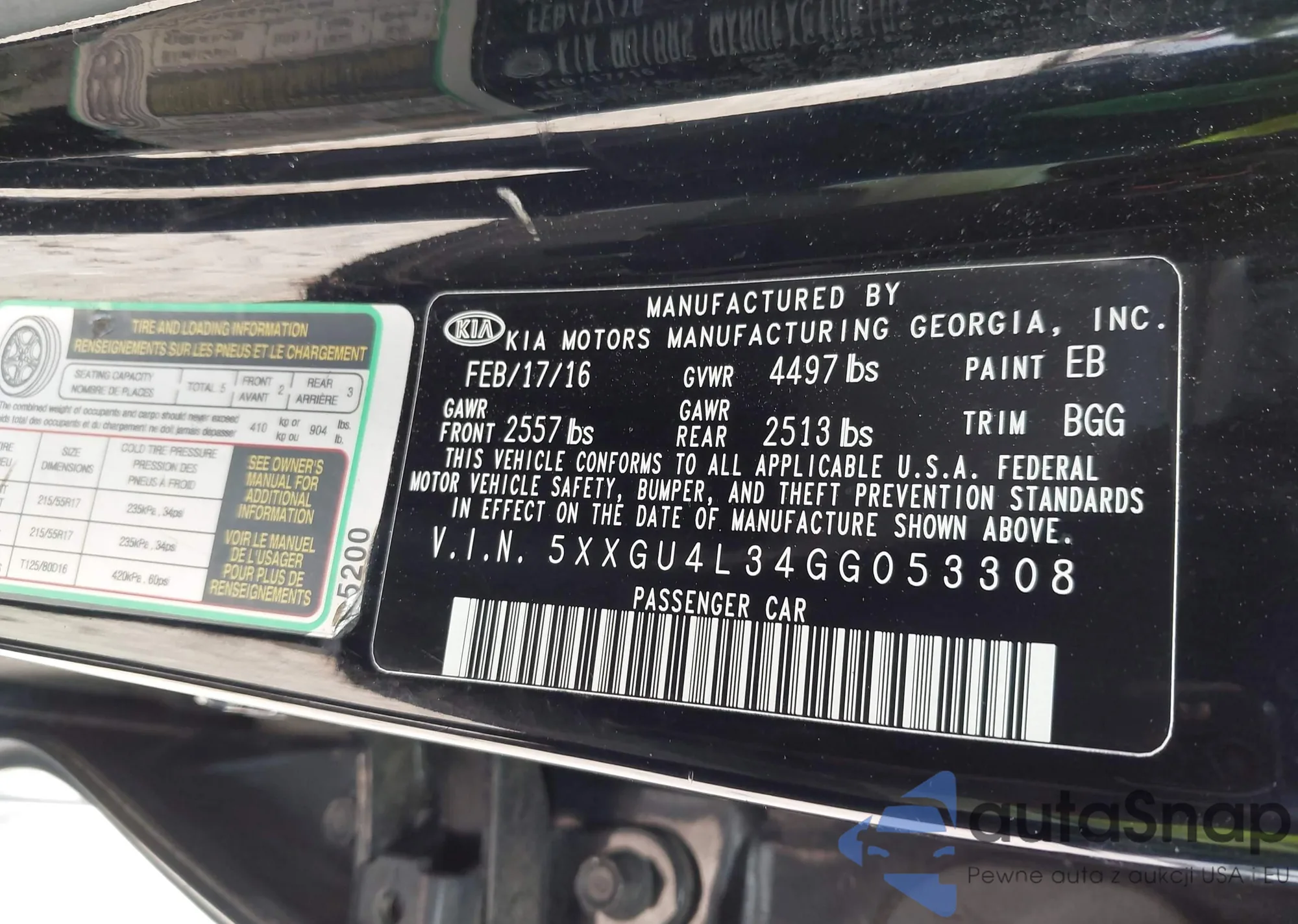 • VIN 5XXGU4L34GG053308