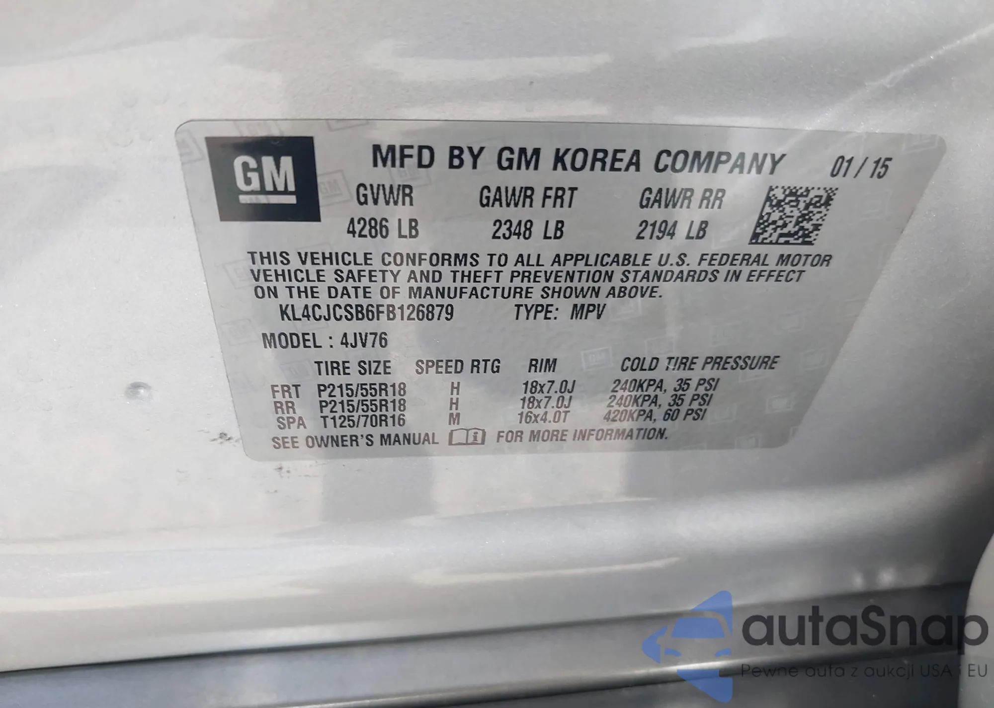 • VIN KL4CJCSB6FB126879