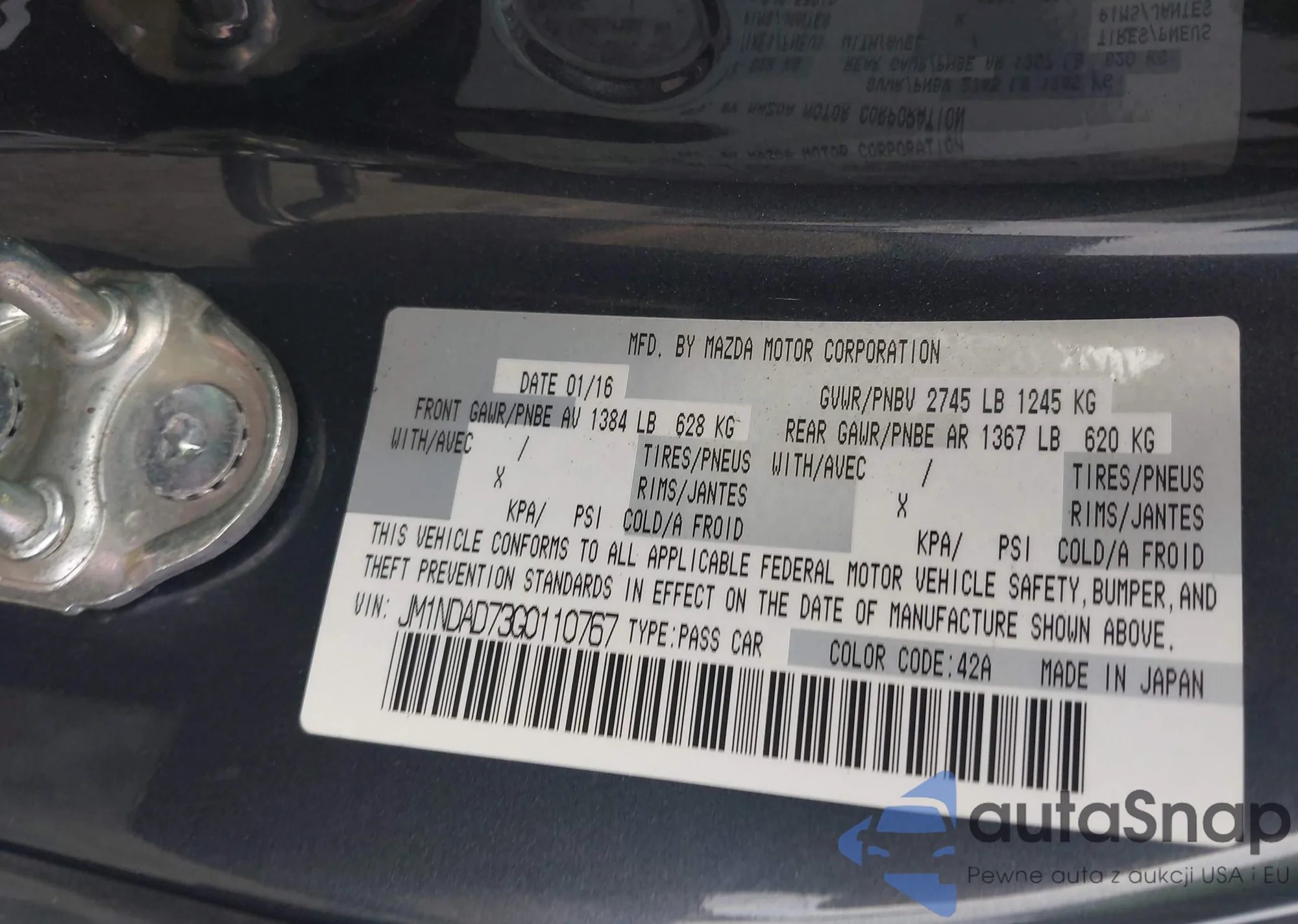 LOT: 42731138 VIN: JM1NDAD73G0110767