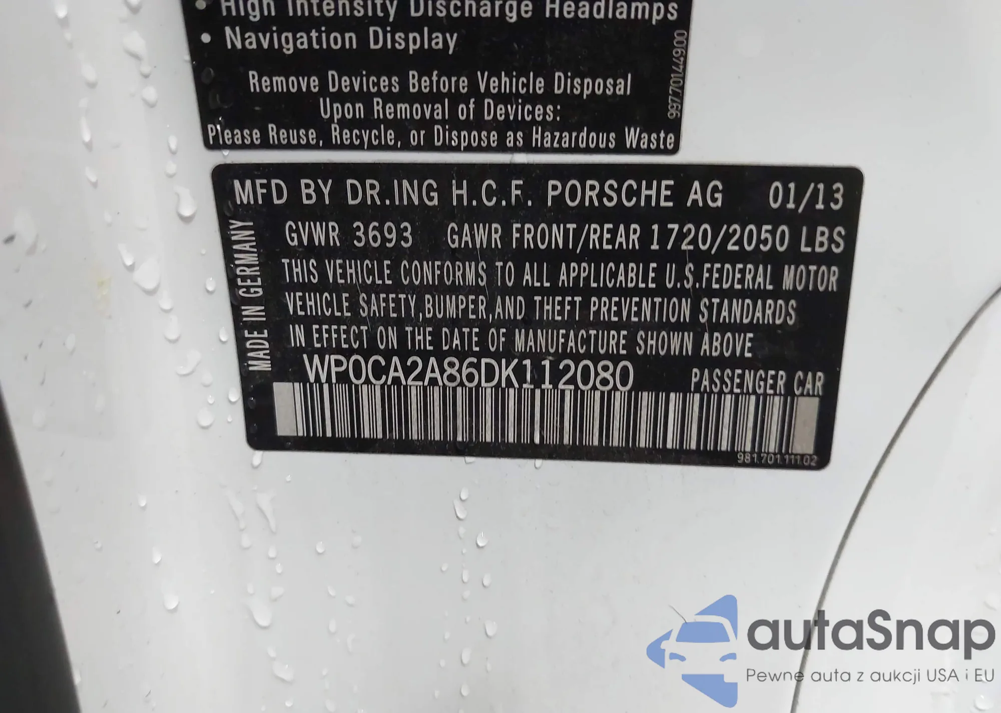 LOT: 43396641 VIN: WP0CA2A86DK112080