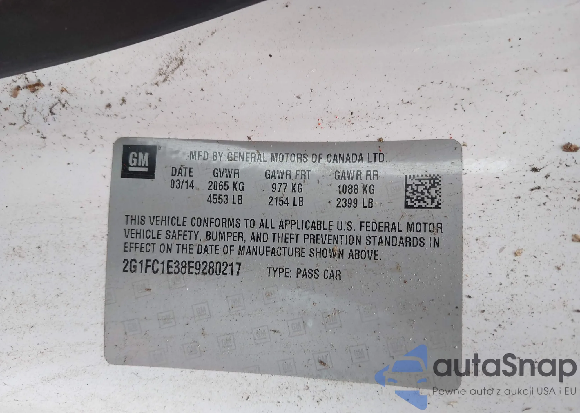 • VIN 2G1FC1E38E9280217