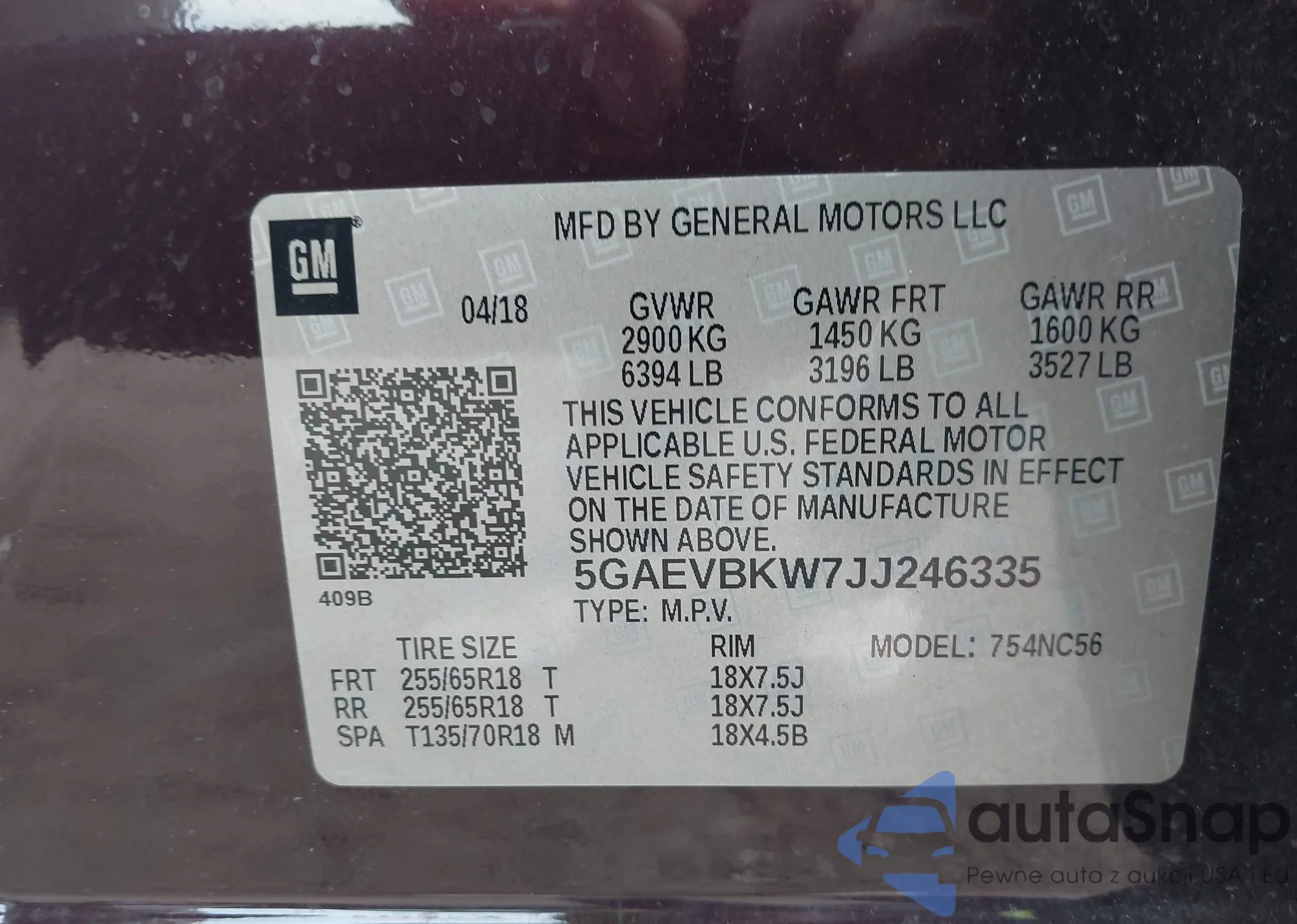 • VIN 5GAEVBKW7JJ246335