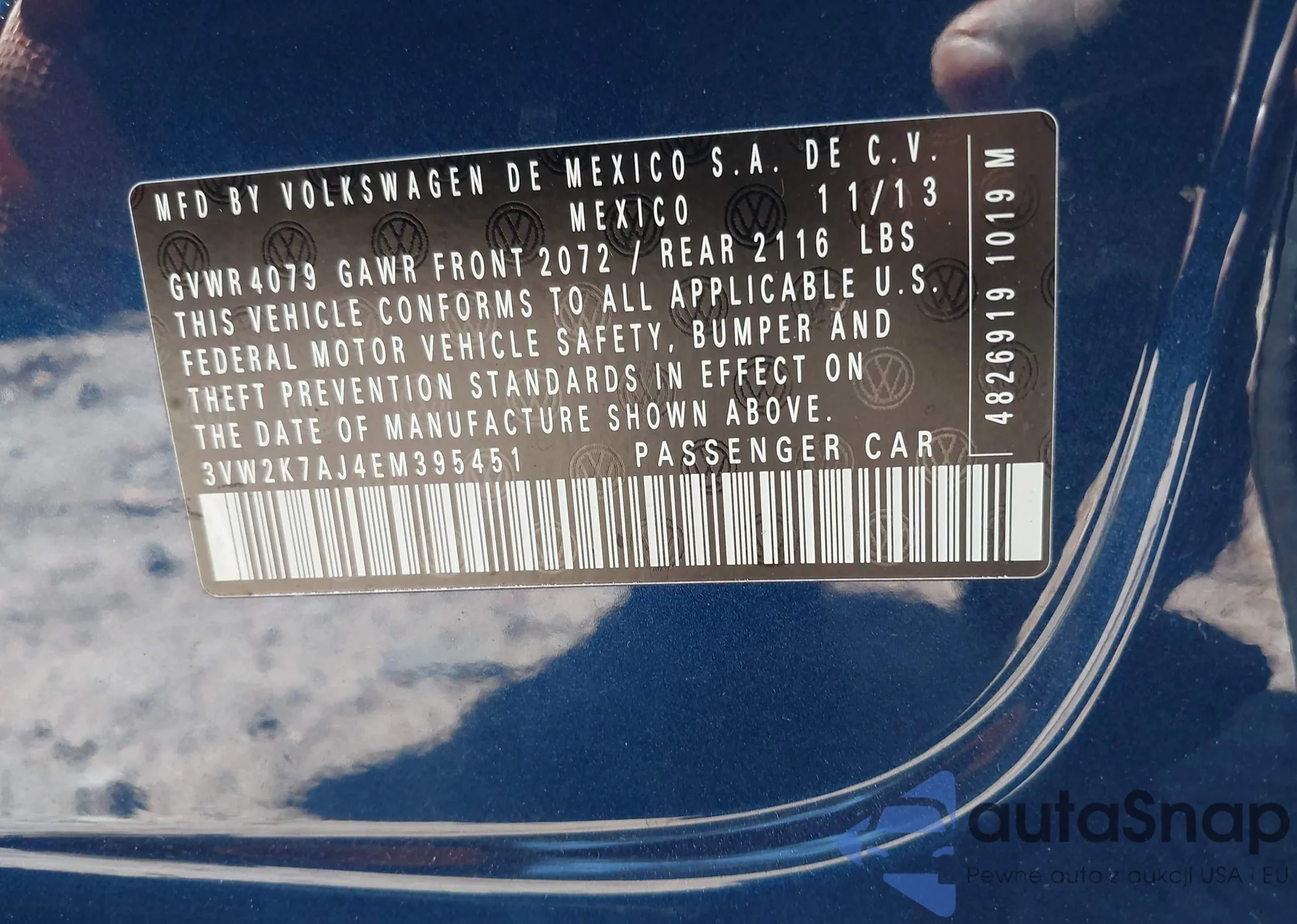 LOT: 43475175 VIN: 3VW2K7AJ4EM395451