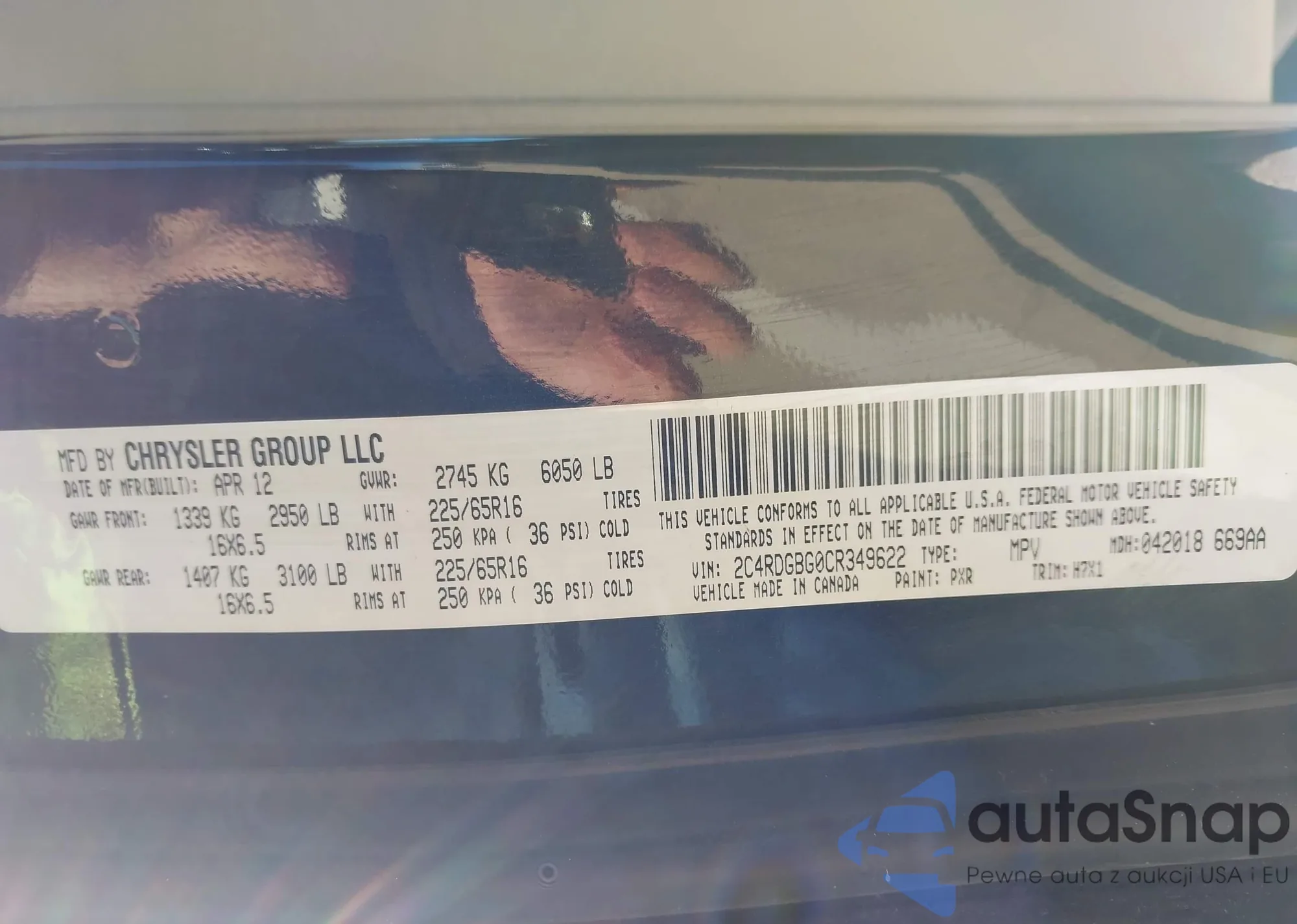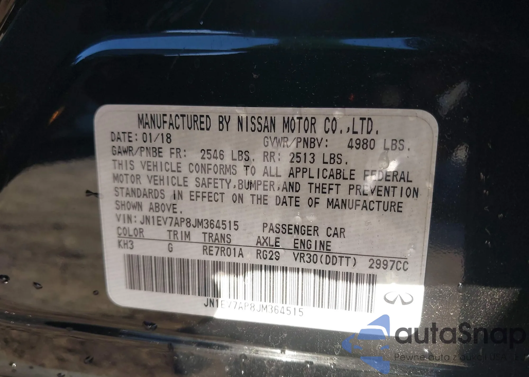 • VIN 2HKRW2H85JH607088