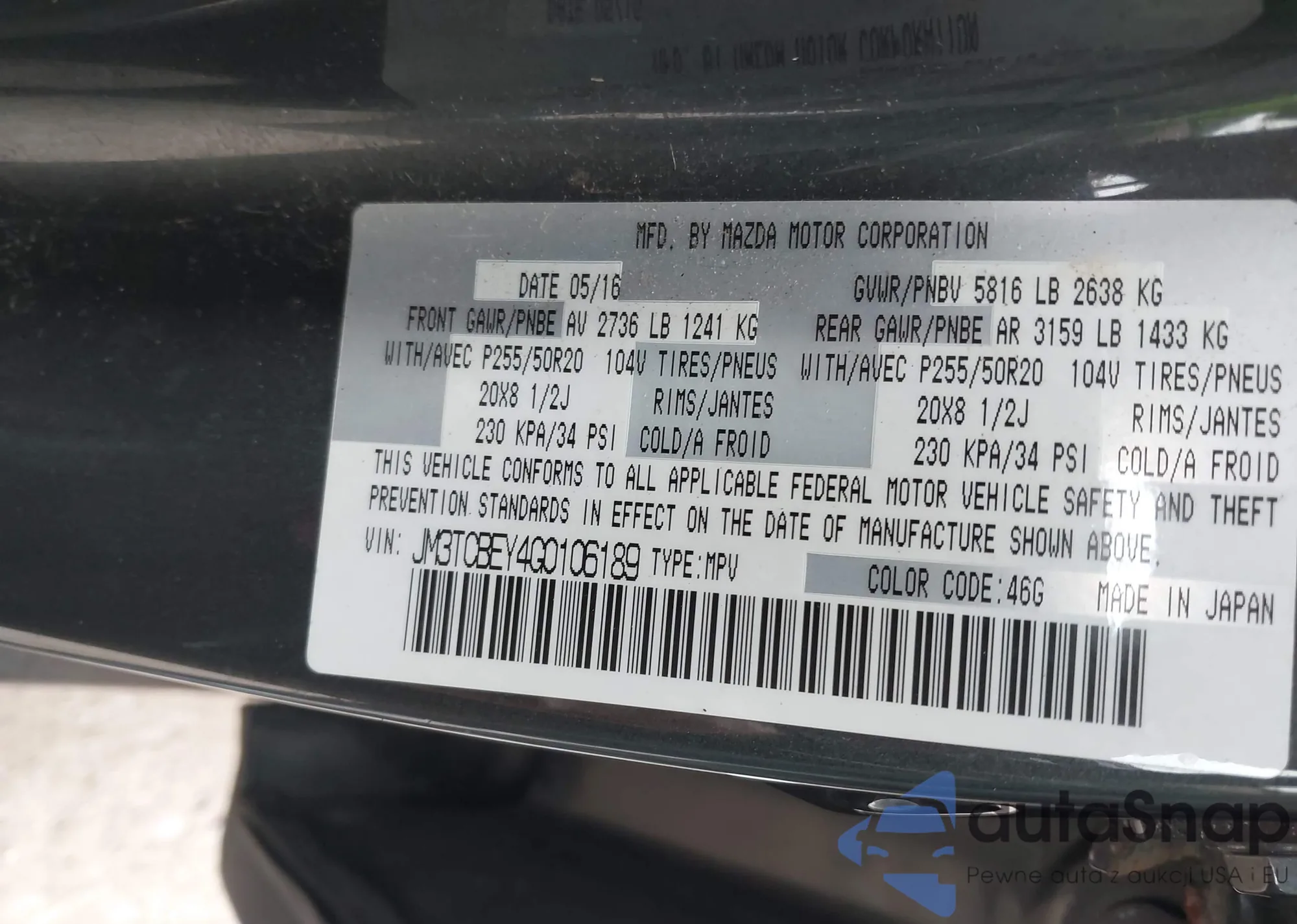 LOT: 43489212 VIN: JM3TCBEY4G0106189